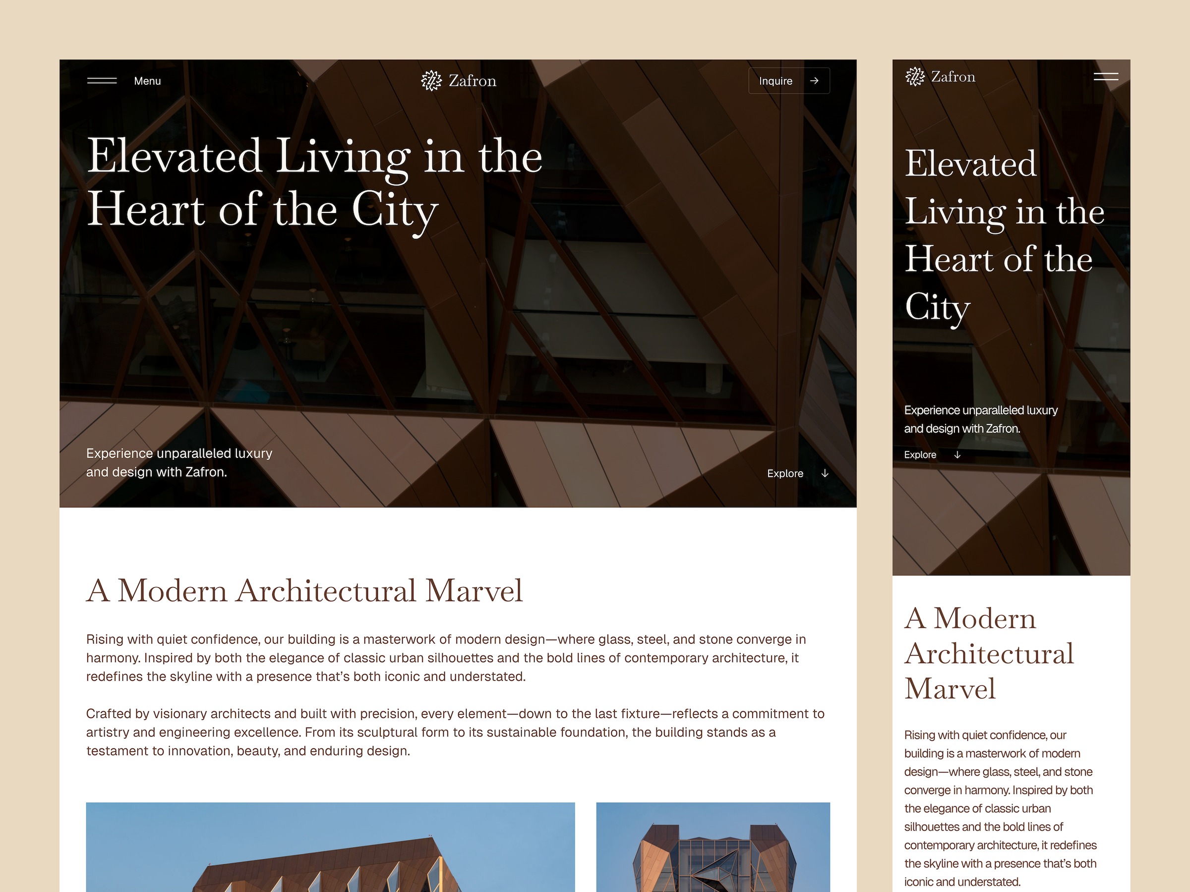 Zafron is a premium Framer template designed for luxury real estate professionals. Showcase residences, amenities, and lifestyle with elegance. Fully responsive, SEO-optimized, CMS-ready, and built to convert visitors into high-value leads.