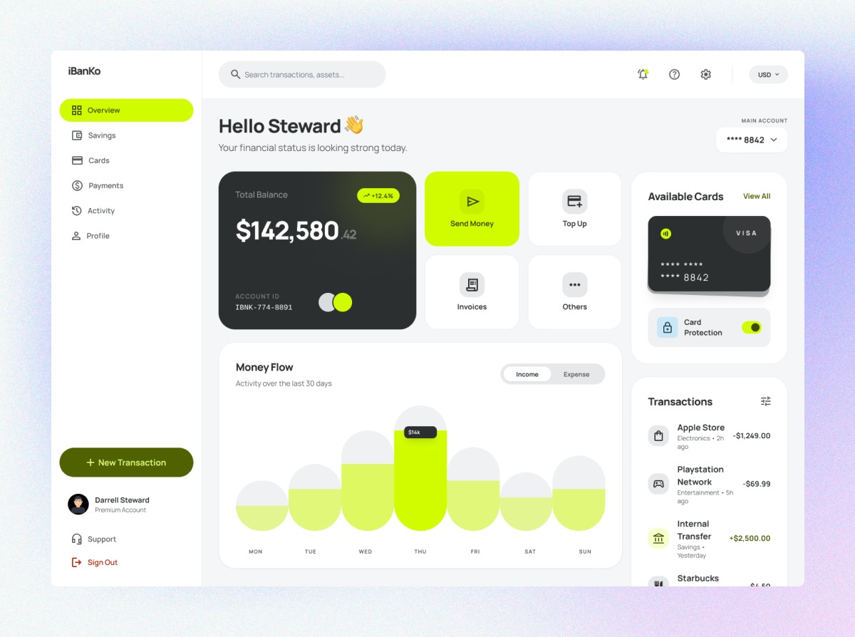 A financial management software for banking people who love to see a 360-degree view of their funds. This is made with Figma.
