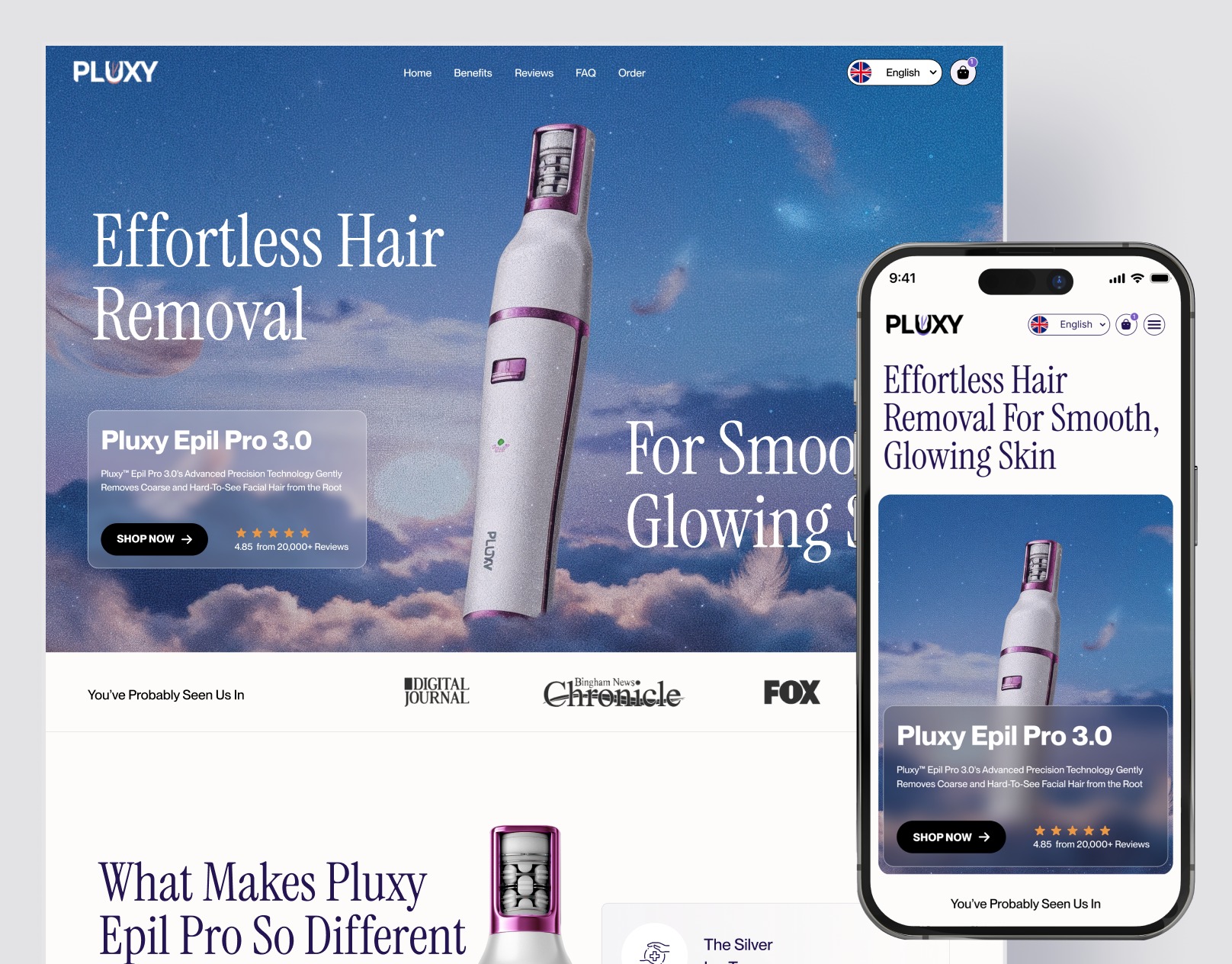 Redesigned the Pluxy Epil Pro 3 website with a focus on refined visuals and clear product presentation. Enhanced imagery, typography, and layout to better highlight key features and elevate the overall brand aesthetic