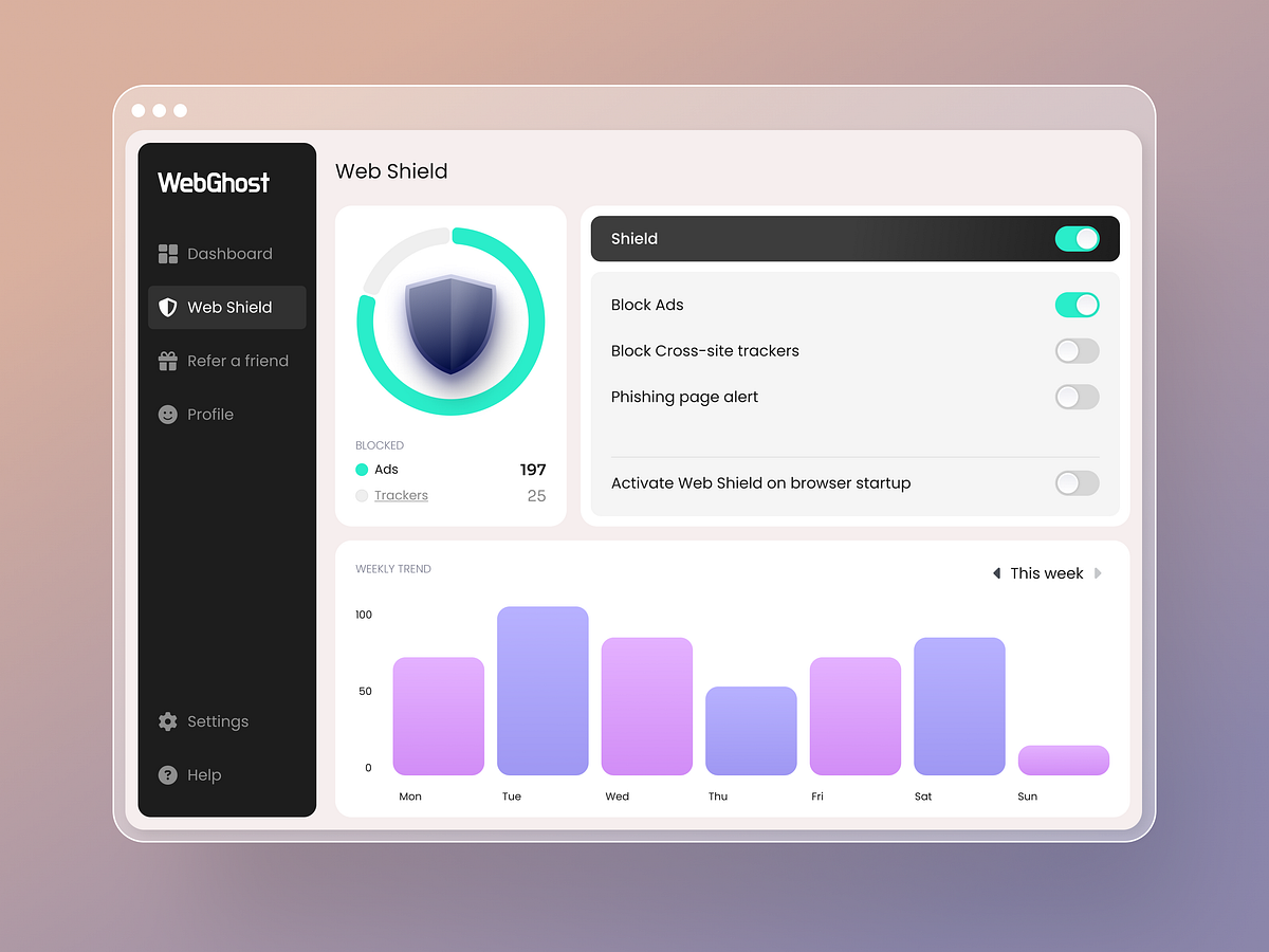 Design for "Web Shield" feature for blocking ads, trackers etc.