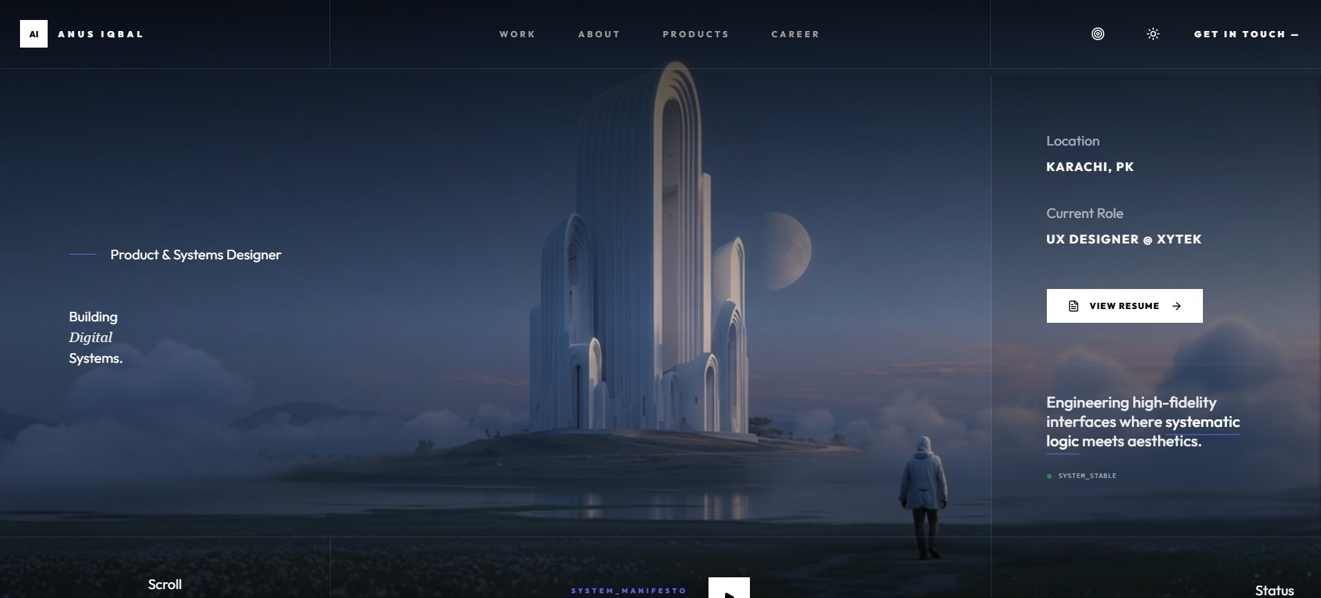 Portfolio of Anus Iqbal, a Product Designer specializing in systematic design, AI interfaces, and digital ecosystems. Explore case studies in AR, Fintech, and SaaS.