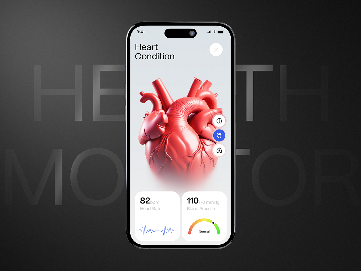 Track health. Simplify care. Empower lives. Our latest Health Monitor App design blends clean minimalism with data-driven precision — turning complex health stats into a calm, intuitive experience users can trust.We focused on crafting an interface that feels human, even when powered by technology — because wellness should feel personal, not clinical.