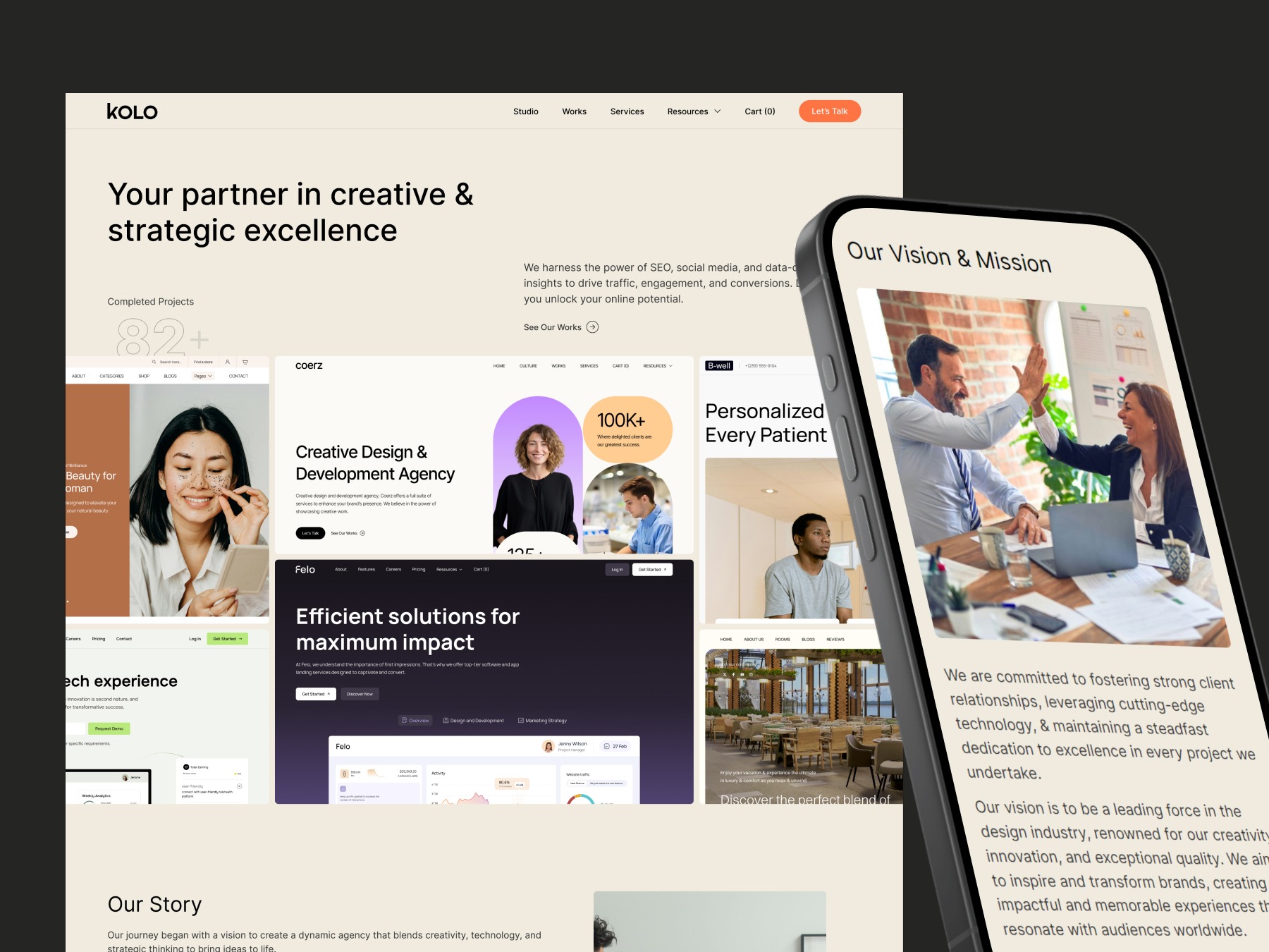 Kolo is a vibrant, modern Webflow template designed for every type of agency, studio, business, portfolio, and creative website. It offers a modern & professional look, making it the perfect choice for showcasing your works & services.