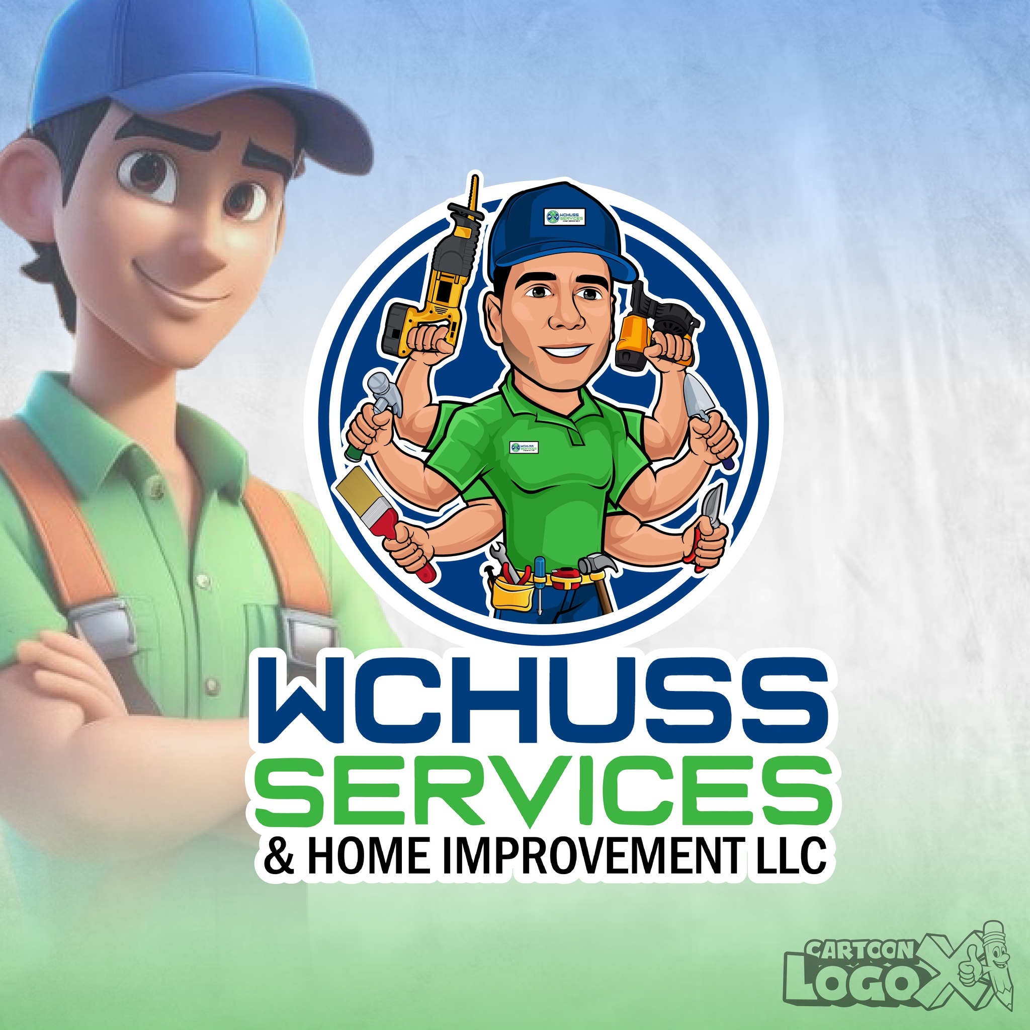 We partnered with Wchuss Services & Home Improvement LLC to create a custom cartoon mascot logo that clearly communicates their expertise in construction and remodeling. After brainstorming ideas, we designed a unique handyman character with multiple arms holding different tools showcasing the wide range of services they offer. The client loved the concept and expanded to a complete branding kit, including business cards, Facebook cover, door hangers, yard signs, and letterheads. A bold, fun, professional identity that now represents their craftsmanship and reliability.