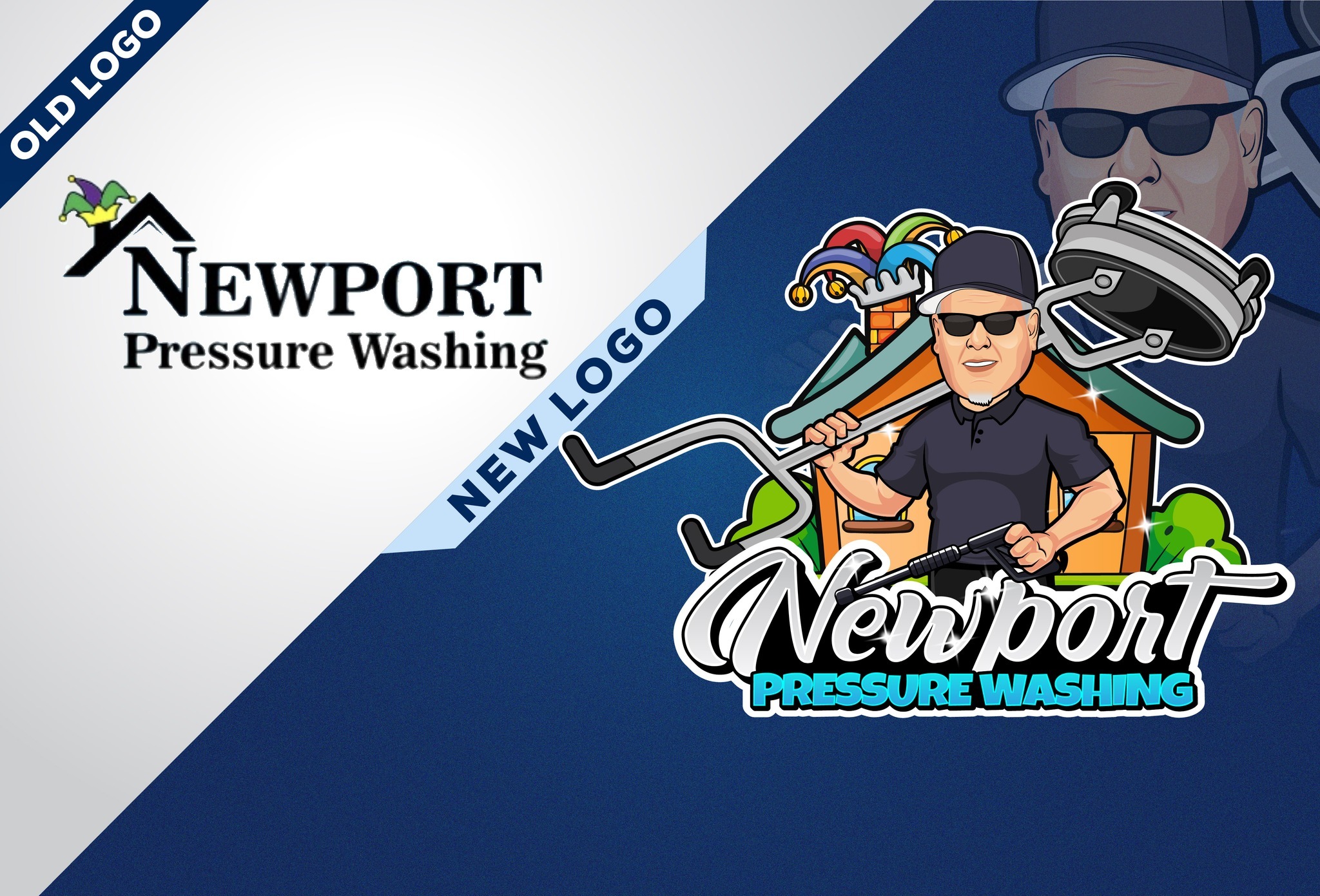 Newport Pressure Washing came to us ready to move beyond a basic text logo and step into 2025 with a bold new identity. We designed a custom cartoon portrait of the owner, Brandon, featuring him with a surface cleaner and pressure washing wand, while thoughtfully incorporating elements from his old logo a house with a jester hat for a touch of nostalgia. The result is a vibrant, modern logo that balances personality and professionalism. Impressed with the transformation, Brandon trusted us with his complete branding package, including business cards, yard signs, door hangers, post designs, and a Facebook cover. Newport Pressure Washing now has a polished brand built to stand out and grow.