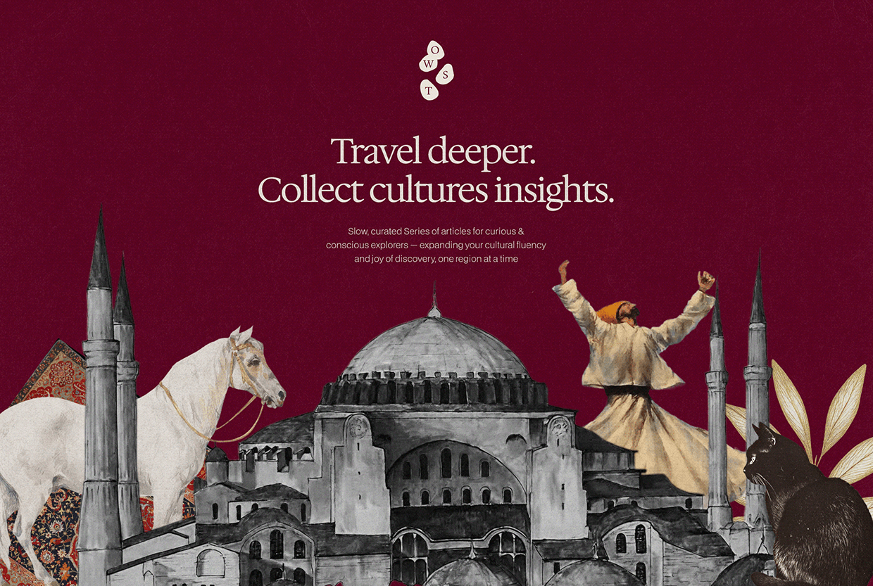 Editorial brand and Webflow website for On Way Storytellers —slow travel storytelling built for depth, culture, and meaning.