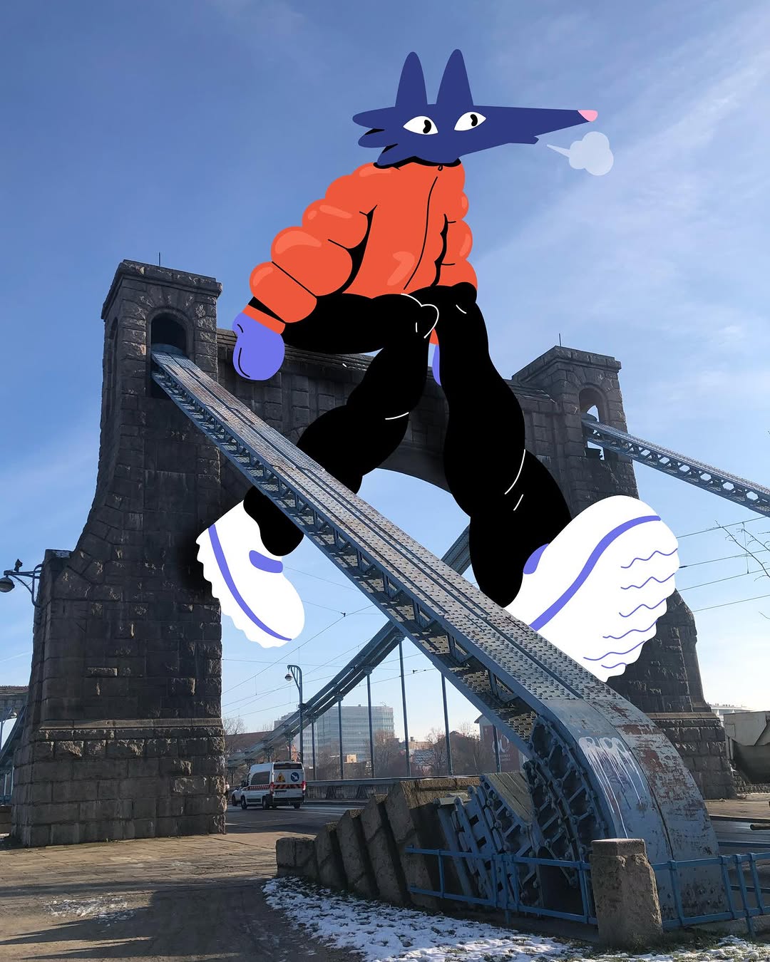 Photo by Design • Illustration in Wroclaw, Poland. May be pop art of slide, bridge and text.