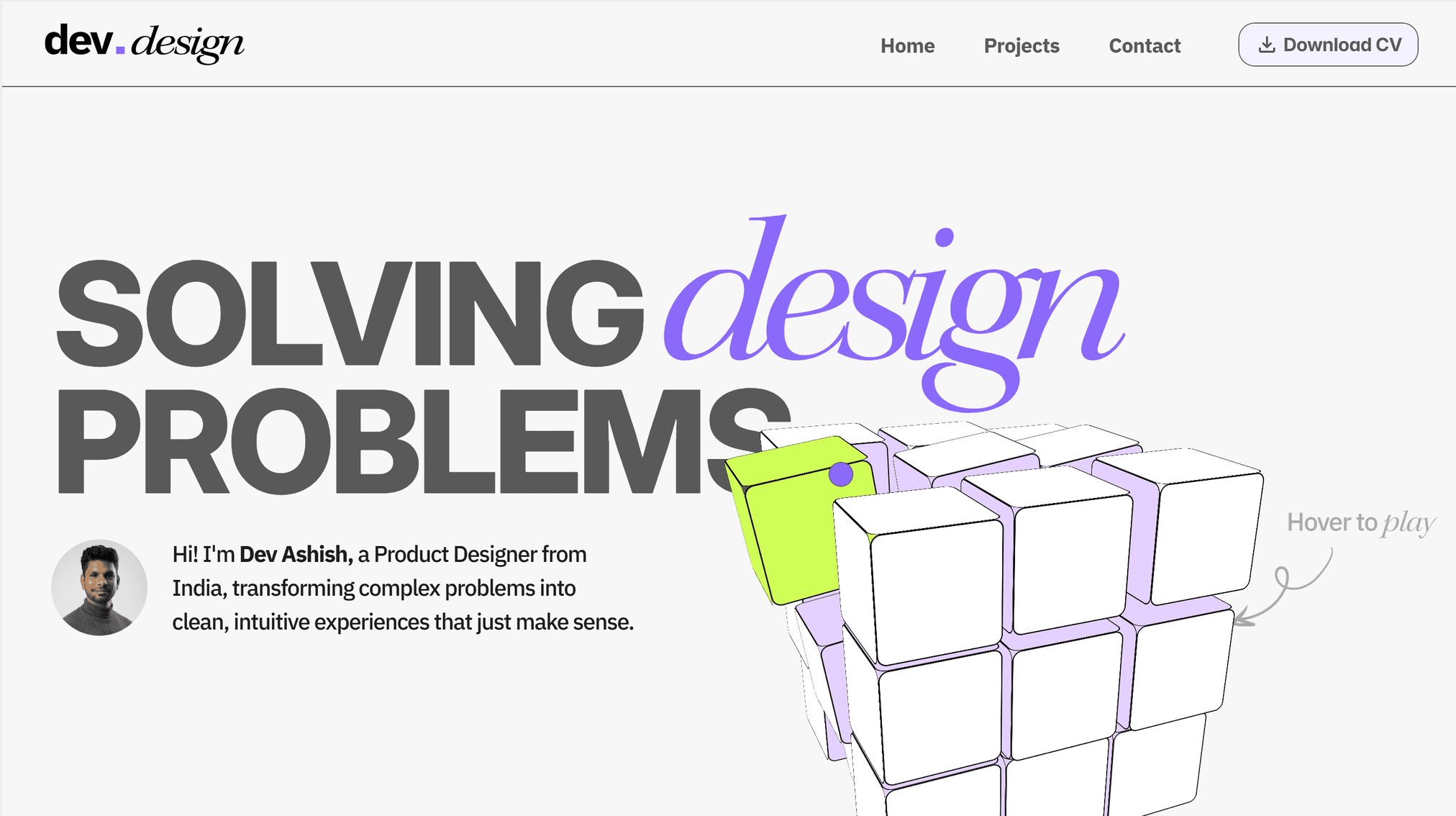 I’m Dev Ashish Dewangan, a Product Designer specializing in UI/UX and interaction design. I create intuitive, user-centric digital products through research, prototyping, design systems, motion, and close collaboration with product and tech teams.