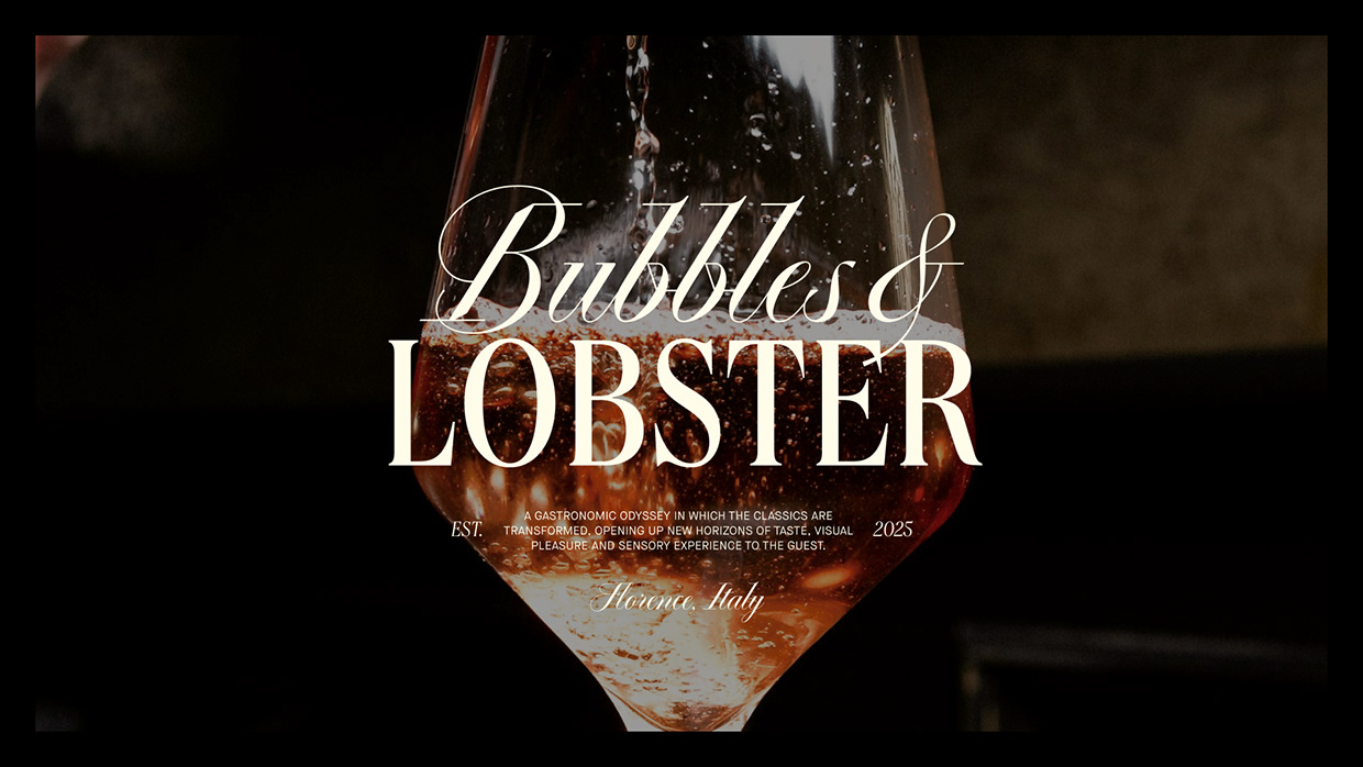 Bubbles & Lobster is a high-end seafood restaurant concept rooted in Italy, combining Riviera daytime elegance with theatrical nighttime decadence. The project’s goal was to create a bold and collectible brand identity that feels both editorial and surreal — evoking curiosity, delight, and storytelling at every touchpoint. The brand targets an audience of design-savvy gourmets, travelers, and aesthetes who seek more than just a culinary experience — they want visual pleasure, sensory immersion, and a bit of unexpected humor. Every brand interaction, from a lobster bib to a menu sticker, was designed to feel like a small collectible moment in a dreamlike seafood fantasy.