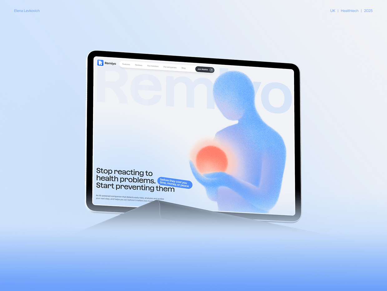 Remiyo — website design & development for a healthtech AI startup focused on proactive healthcare and wellbeing. This project explores how visual storytelling, soft color palettes, and calm motion design can build trust in digital health products.