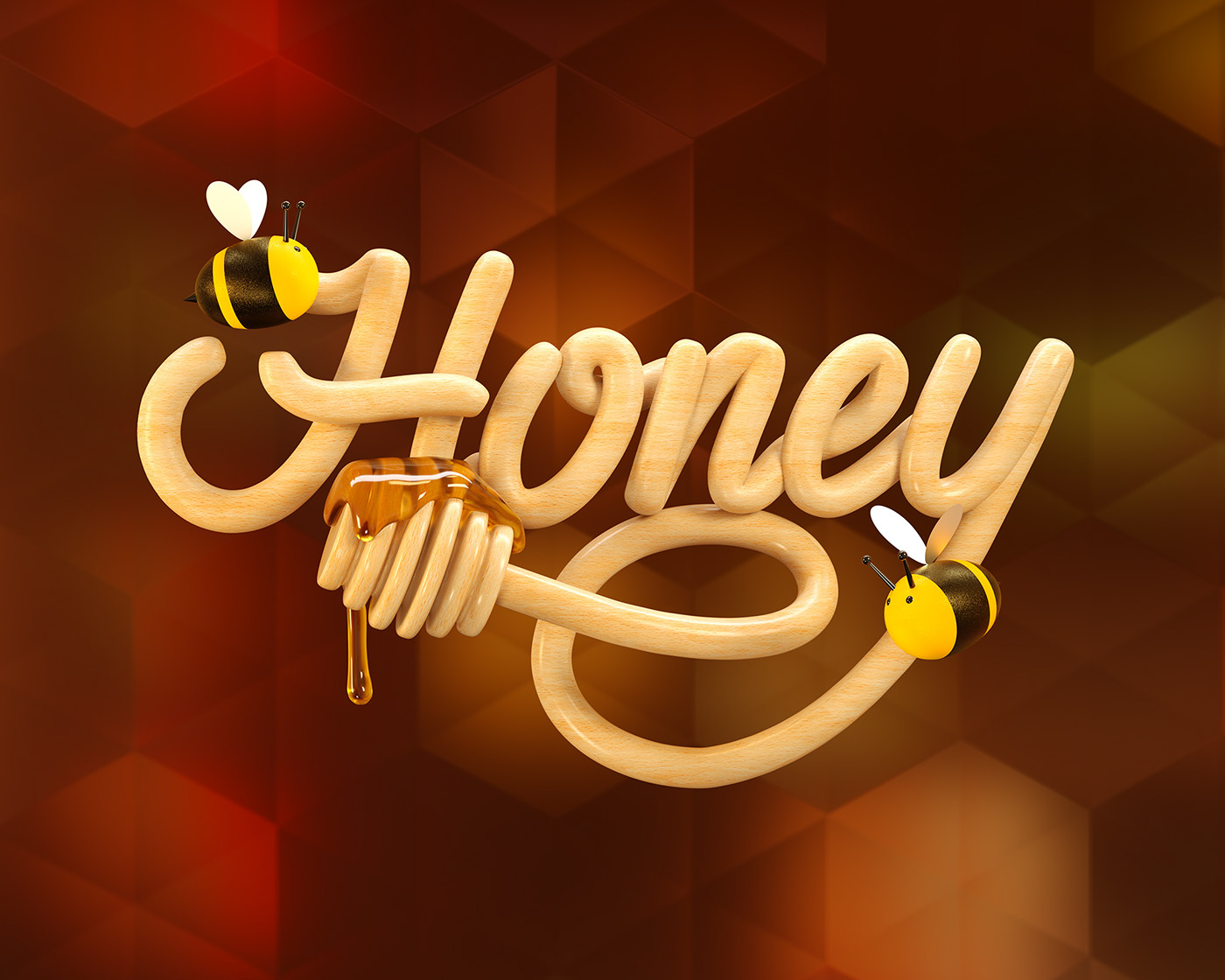 Honey é uma sofisticada arte em lettering 3D, criada pelo artista visual e designer gráfico, Evel Nogueira.