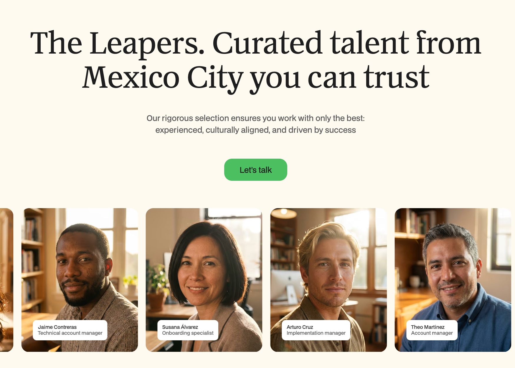 Build elite Customer Success and Sales Engineering teams from Mexico City at 50% less cost. Operator-vetted, English-fluent professionals ready in weeks.