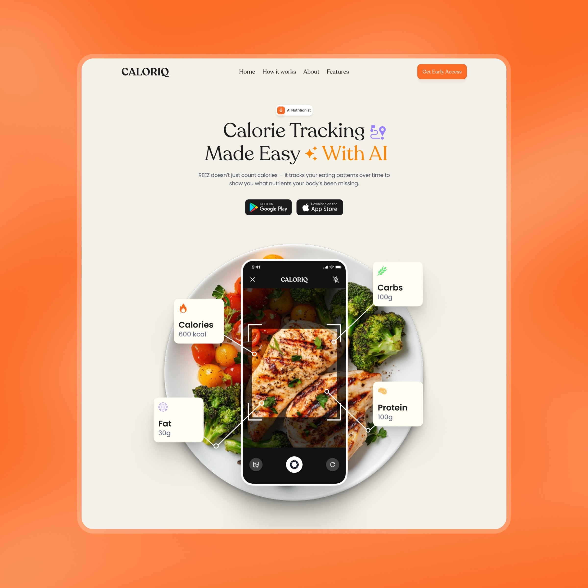 UX Problem The process of tracking the amount of calories is usually annoying and disorienting. Manual entry, incomprehensible nutrition information, and apps which prioritize figures over habits drive users to drop-offs and inconsistency. UX Solution Our landing experience is AI-first and incredibly easy and value-driven. High visual hierarchy, food-oriented pictures, and basic messages are why AI scans food, monitors nutrients, and eliminates the complexity of everyday tracking. Result A straightforward landing page that makes you see immediately how Caloriq works and why it is easier. In a couple of seconds, the users realize the value of it, which leads to an increase in interest, trust, and app downloads.