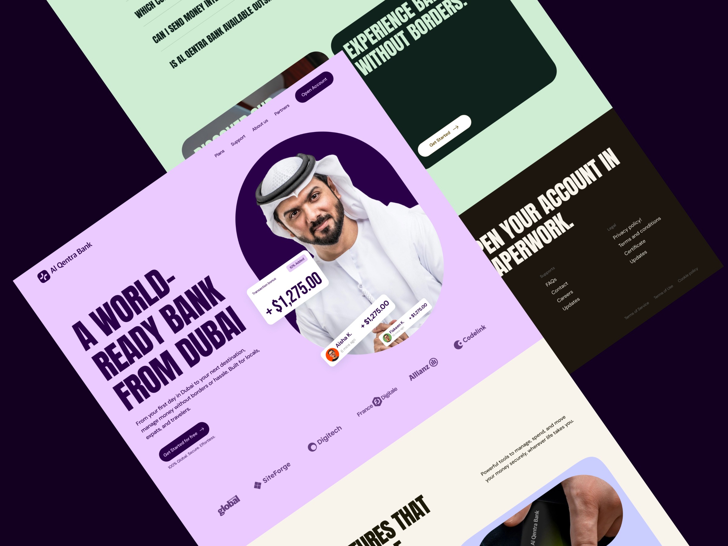 UX Problem The majority of fintech apps continue being confusing, daunting, and information-saturated. They have difficulties with value propositions that are not well explained, strange words, and clumsy interfaces that leave users overwhelmed when it comes to performing such simple tasks as opening an account or learning how to do something. Distrust is another significant obstacle as financial platforms cannot portray security, ease, and credibility visually. UX Solution The landing page of Al Qentra Bank is made with a clear and trusted design. The use of a clean layout, bold typography and organised messages makes people know immediately what the bank is offering. Security, global access and major features are brought out in the hero section using simple direct content. Whitespace, high hierarchy, and a narrowed CTA can make the user navigate the experience with ease and ease, whereas lifestyle images make the brand seem more human and create emotional trust. Result Heavy trust, conversion-ready Fintech experience that is easy to understand, modern and confident. The value is easily understood by users in a few seconds, they can easily navigate, and they do not fear exploring or creating an account. The sleek look is less overwhelming, more credible, and more effective in getting attraction to a worldwide financial group.