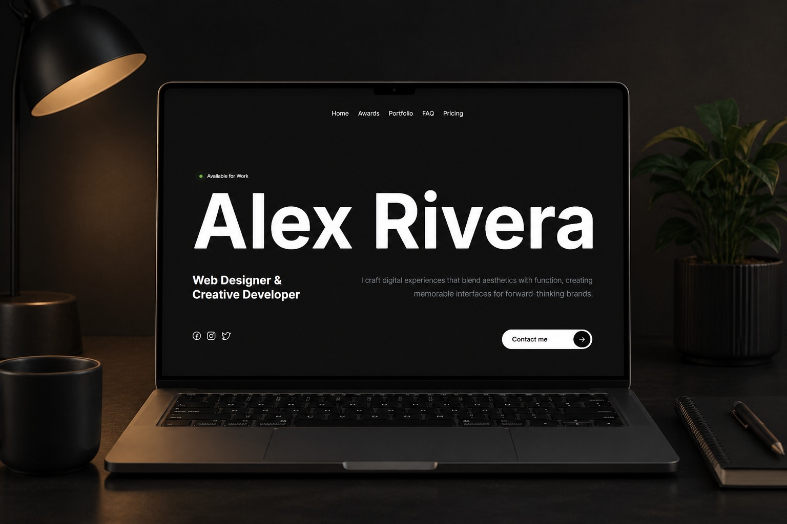 Alex Rivera is a sleek, modern Framer portfolio template crafted for web designers, creative developers, and digital freelancers who want to showcase their work with confidence. Featuring bold typography, dark elegant aesthetics, smooth interactions, and a conversion-focused structure, this template helps you present projects, build credibility, and attract clients. Includes sections for: Hero introduction Featured portfolio projects Awards & achievements Skills FAQ section Pricing or service packages Contact CTA for leads Perfect for designers, Framer experts, creatives, and independent studios looking for a minimal but memorable online presence.