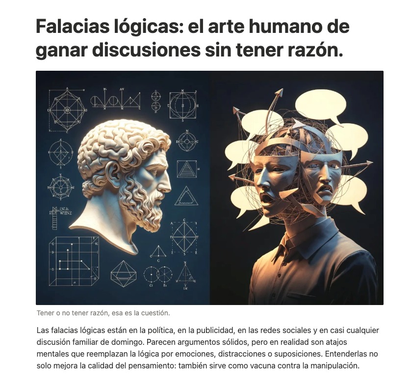 Las falacias lógicas están en la política, en la publicidad, en las redes sociales y en casi cualquier discusión familiar de domingo. Parecen argumentos sólidos, pero en realidad son atajos mentales que reemplazan la lógica por emociones, distracciones o suposiciones. Entenderlas no solo mejora la calidad del pensamiento: también sirve como vacuna contra la manipulación.