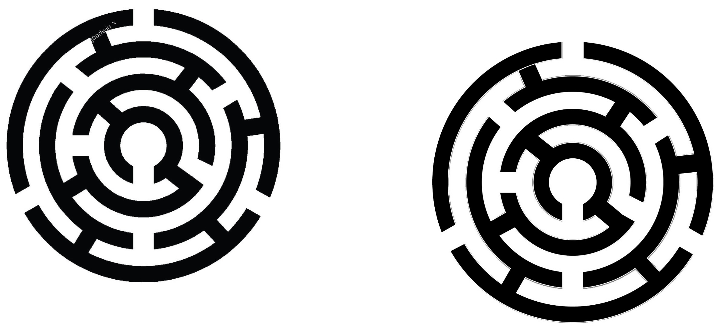 A circular emblem designed in Adobe Illustrator using modular segments and radial geometry. The composition is built around concentric paths and controlled breaks, creating a maze-like visual language that guides the eye toward the center. Emphasis is placed on rhythm, balance, and negative space, demonstrating how repetition and interruption can coexist within a structured system. The study highlights scalability and adaptability, making the emblem suitable for modern logos, symbols, and tech-oriented visual identities.