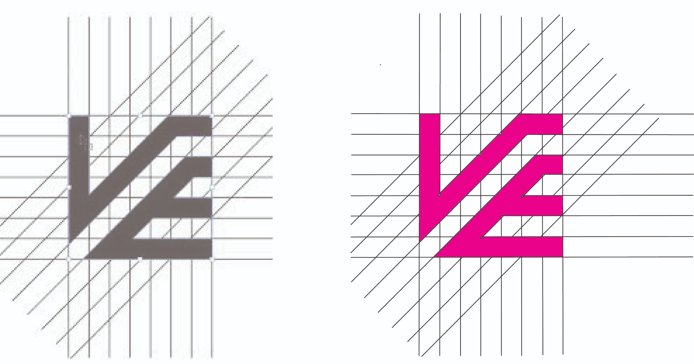A geometric monogram built from the letters “V” and “E,” designed in Adobe Illustrator using strict grid alignment and diagonal construction lines. The study focuses on stroke consistency, angular rhythm, and modular structure to achieve a bold yet balanced letterform. By exposing the underlying grid system, the design highlights the relationship between structure and expression, demonstrating a methodical approach to modern typographic logo design suitable for branding and identity systems.
