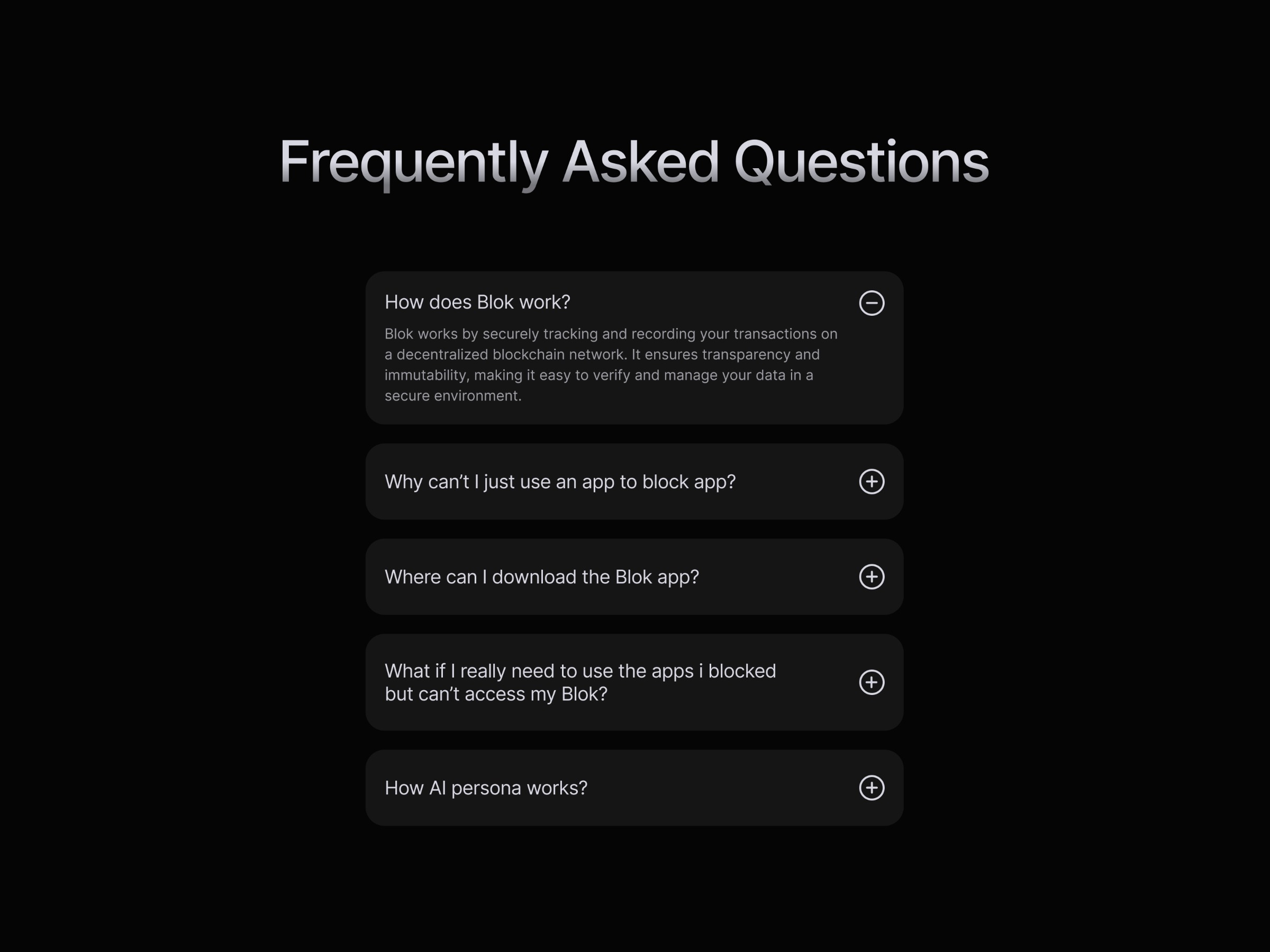 Hey Designers! 👋 Sharing a clean and minimal FAQ section design I worked on recently for Blok. The goal was to create a distraction-free environment using a deep dark theme. I utilized an accordion pattern to keep the information digestible, allowing users to expand questions without cluttering the interface. The high-contrast typography ensures readability while maintaining a sleek, modern look. Key features: Expandable card interface (Accordion) Minimalist dark mode aesthetic Clean sans-serif typography