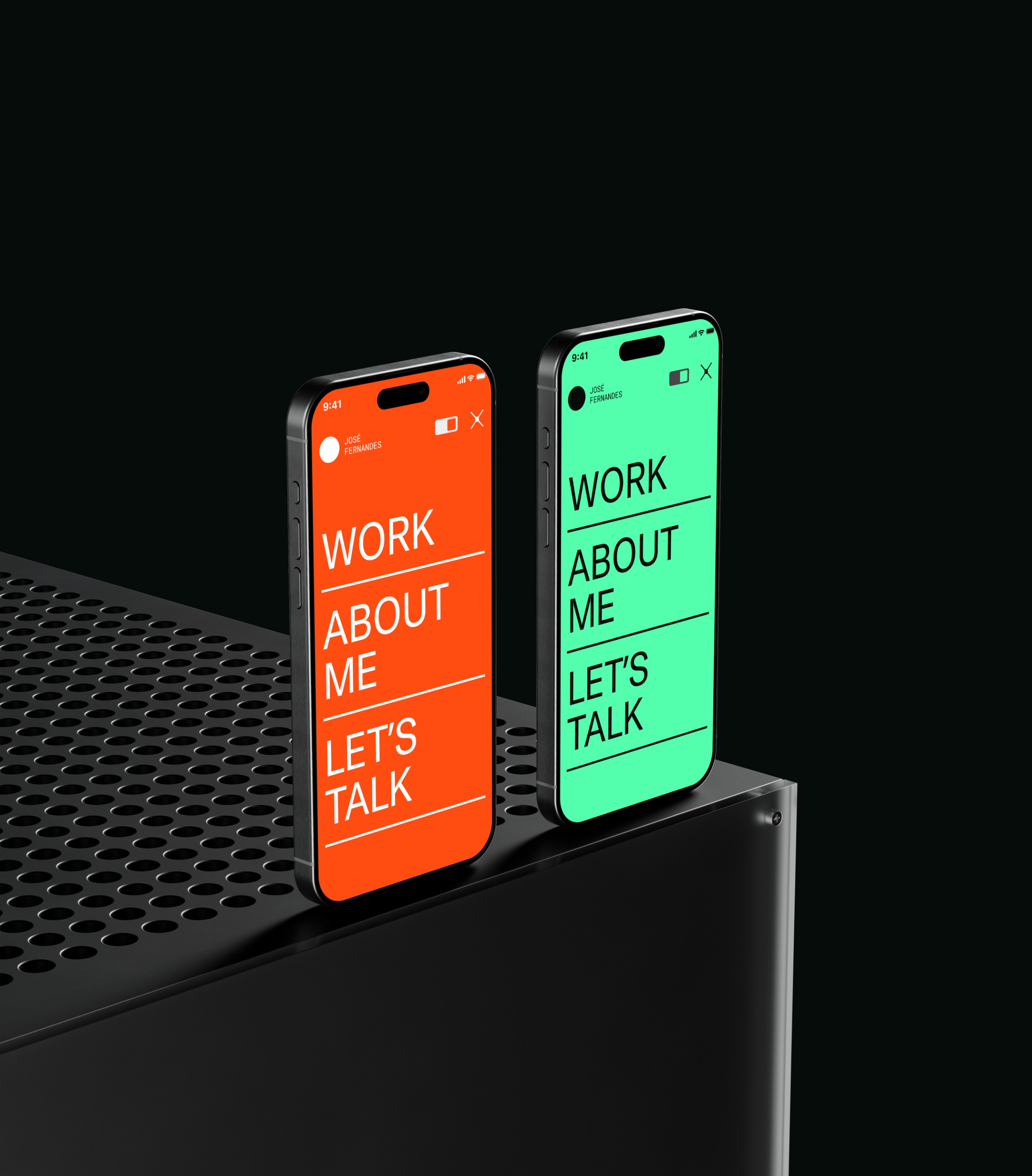 A minimal palette with contrast in mind. Typography is sharp and oversized. Swiss-inspired, grid-aware, made to guide the eye. [A streamlined menu experience for my portfolio. Coming soon.]