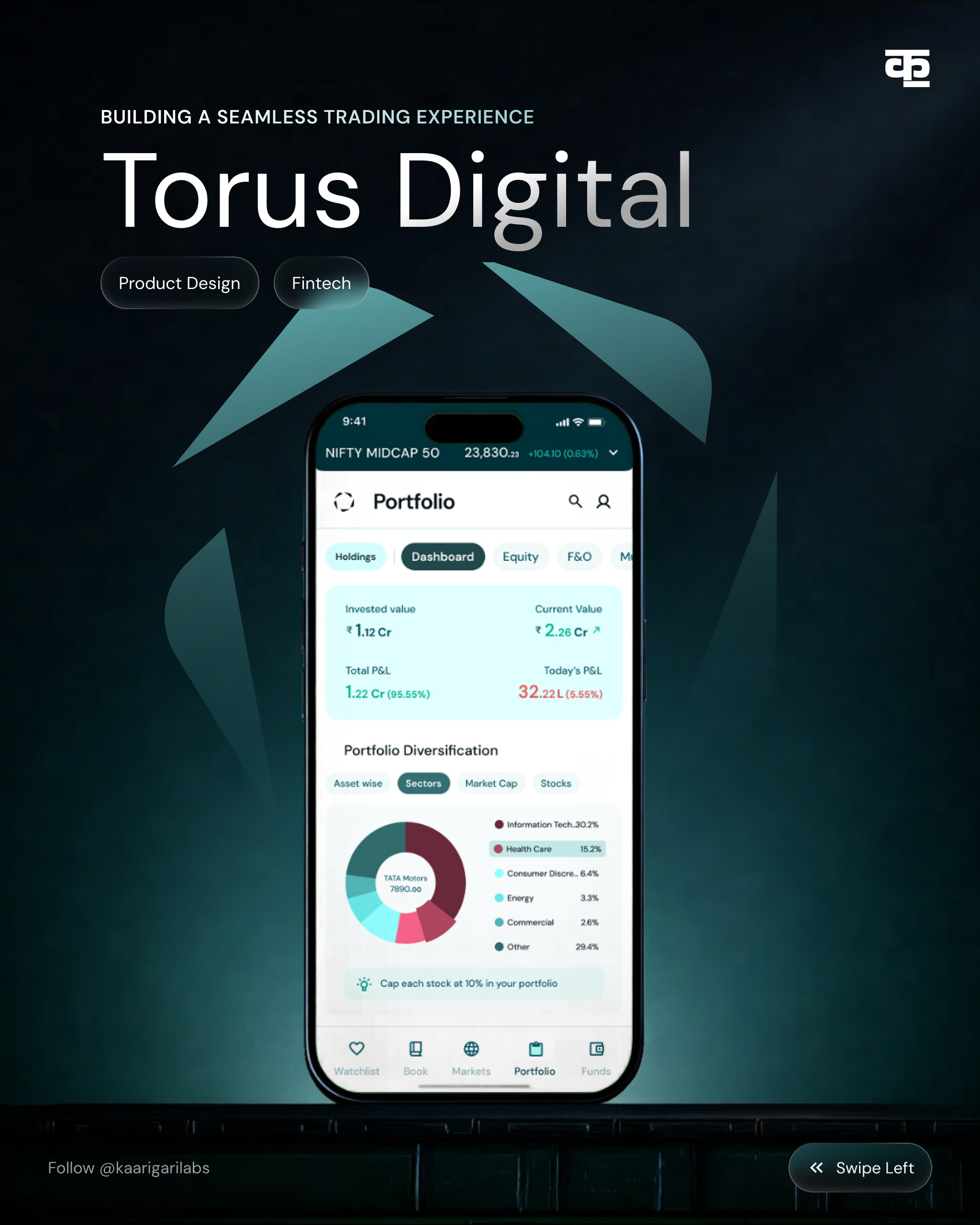 Building a seamless trading experience for the modern investor. Torus Digital is designed with clarity, speed, and confidence at its core — turning complex market data into intuitive, AI-powered UI/UX flows. Crafted by Kaarigari Labs, where design meets intelligence. 🚀 #TorusDigital #KaarigariLabs #UIDesign #UXDesign #FintechDesign #TradingApp #StockMarketApp #ProductDesign #MobileAppDesign #DashboardDesign #SaaSDesign #FintechStartup #AppUI #UXCaseStudy #DesignAgency #StartupDesign #DigitalProduct #UserExperience #AIUX #IndianDesign