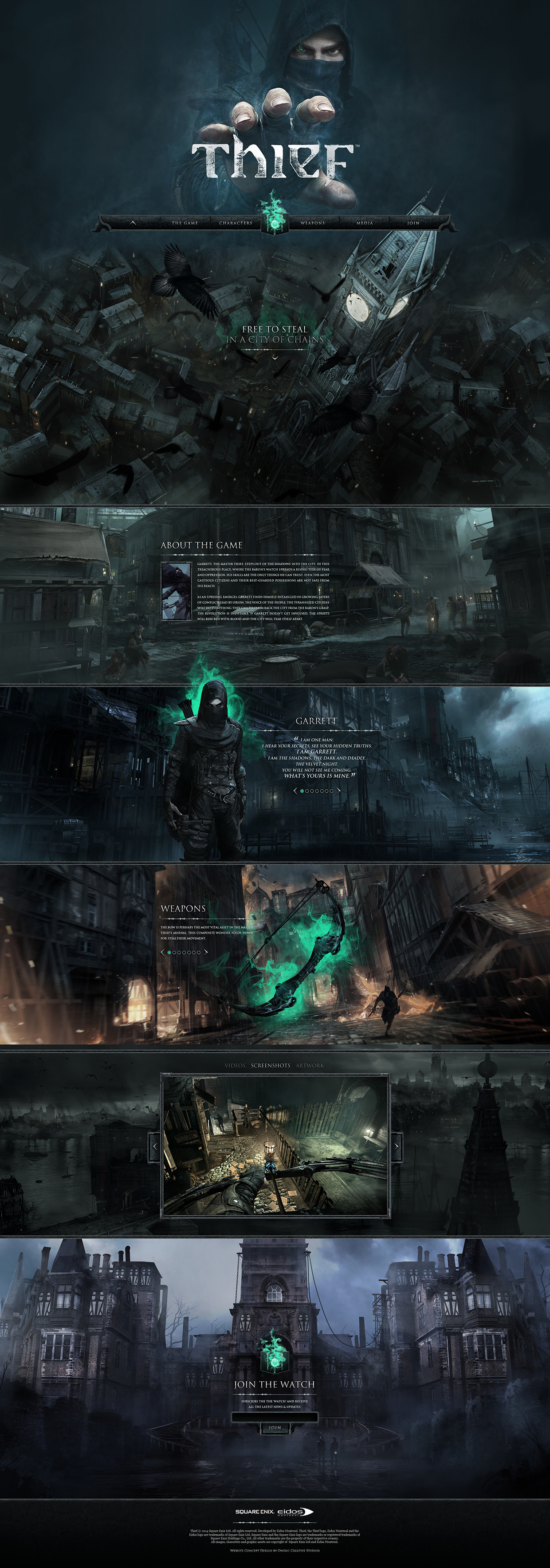 Web UI design concept for the official website of the Thief 4 game by Square Enix.