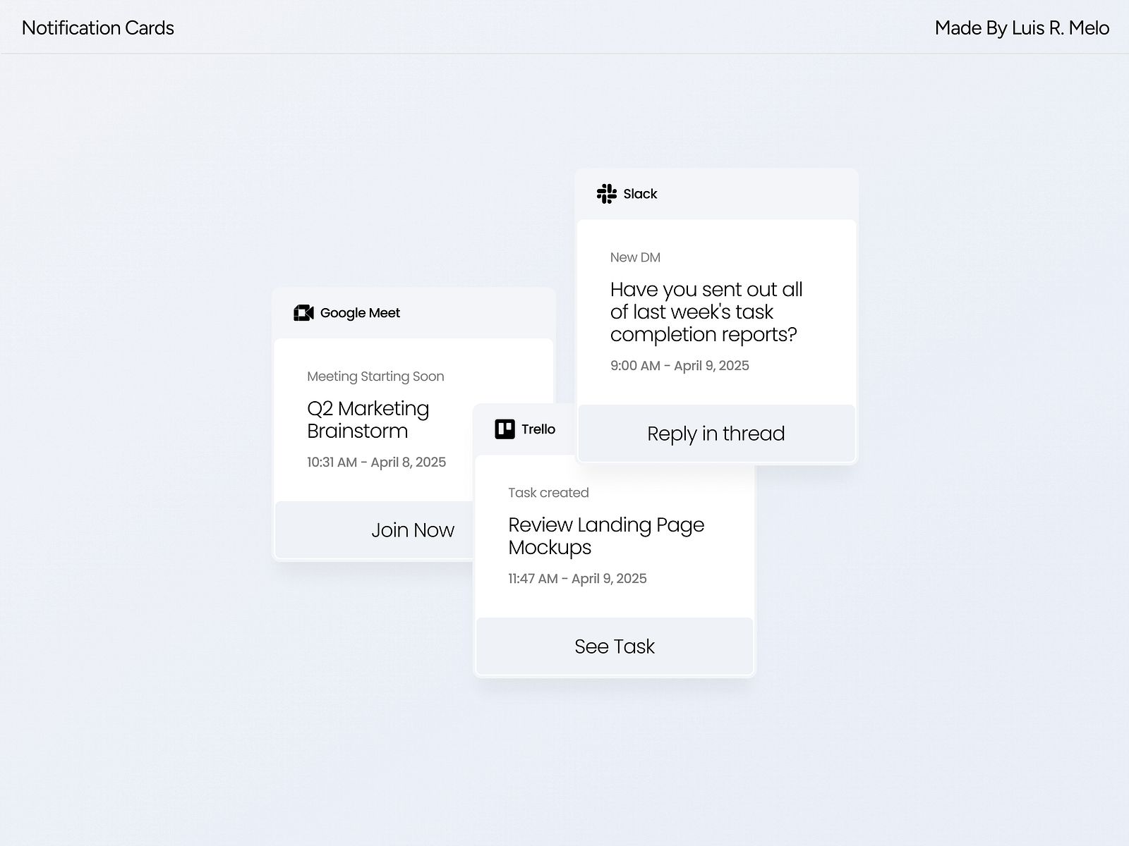 Notification Cards designed by Luis R. Melo. Connect with them on Dribbble; the global community for designers and creative professionals.