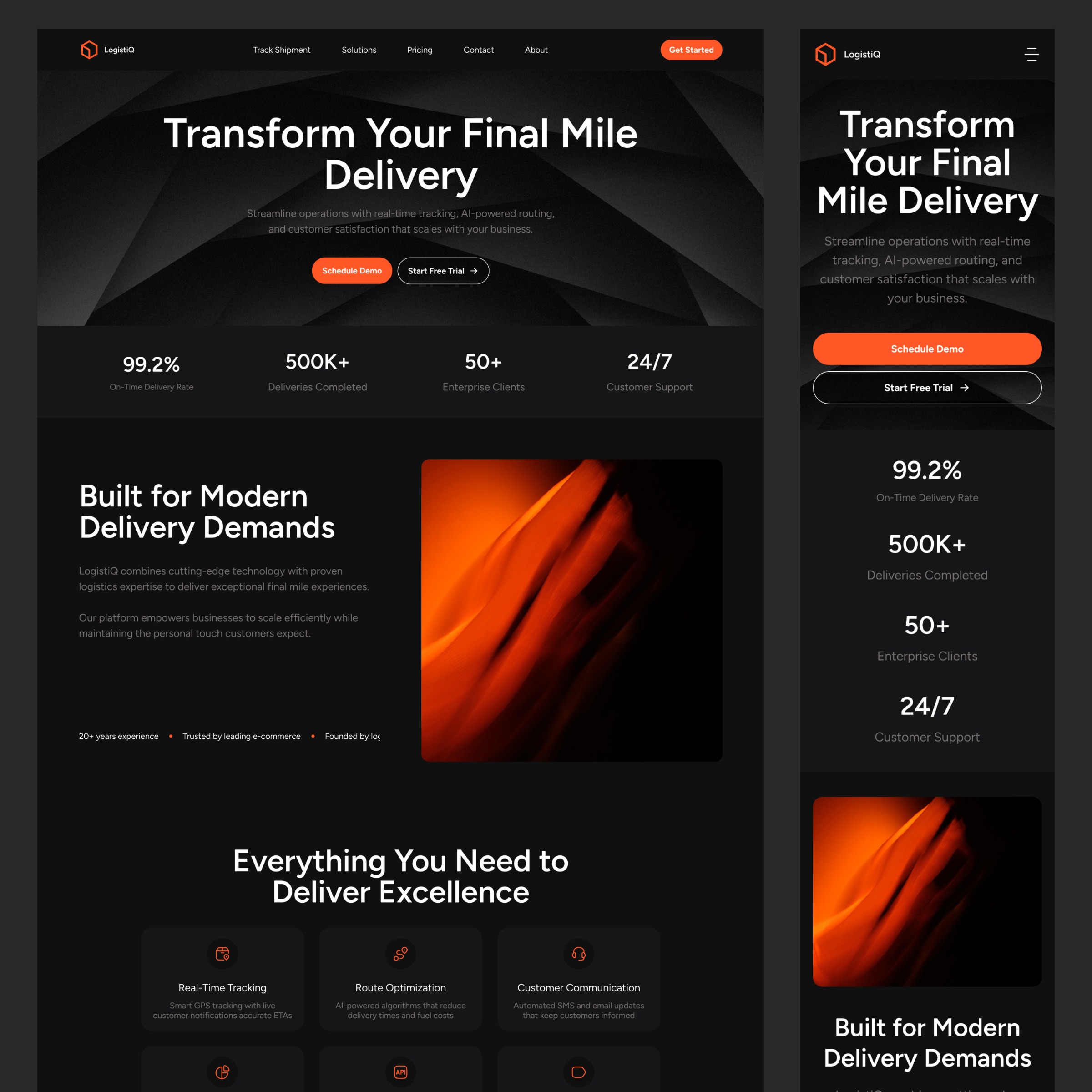 A powerful, professional landing page design for logistics and supply chain platforms. It's perfect for Logistics companies, freight management systems, supply chain software, fleet tracking platforms, and shipping SaaS products