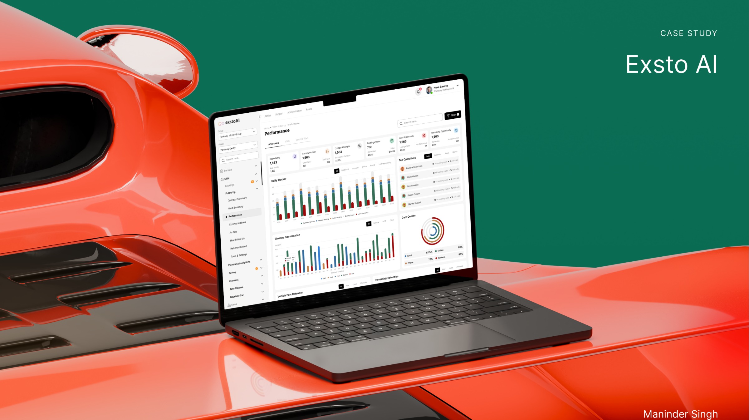Exsto.AI dashboard is a data-driven platform designed for automotive dealerships. It provides AI insights, secure paid access predictions, and clear workflows to support faster decisions. The UI focuses on trust, clarity, and smooth task completion for dealers and internal teams.
