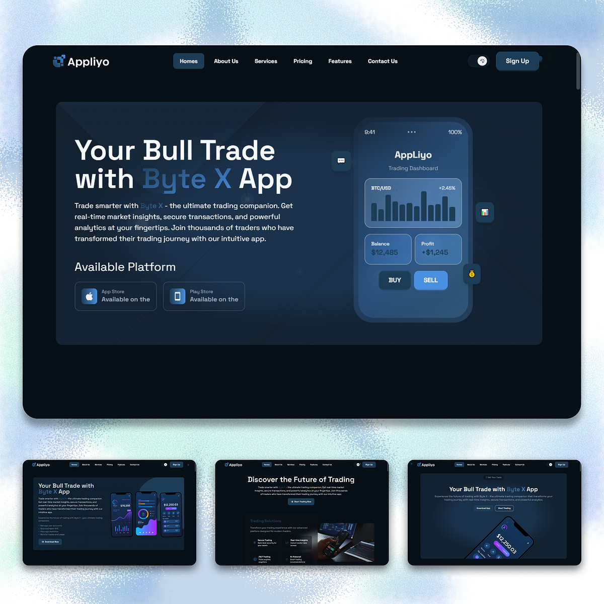 Appliyo – Modern Trading App Landing Page A sleek and professional landing page built with React + Tailwind 4.1.Fully responsive, fast, and designed to convert—whether for stock, crypto, or investment apps. ✨ Key Features: 📱 Fully Responsive – Flawless across mobile, tablet & desktop. 🎨 Professional Design – Clean layout with modern UI trends. ⚡ Fast-loading & SEO Optimized – Built for performance & visibility. 🌙 Light & Dark Mode – Smooth toggle with polished styling. 🛠️ Easy Customization – Modular code structure with Tailwind 4.1. Best For: 💹 Stock & Crypto Startups 📊 FinTech SaaS Products 🌐 Investment & Trading Apps Ideal for developers, freelancers, and companies looking to launch fast with high design quality. 🎨 Designed & Developed by Mantraksh Dev.
