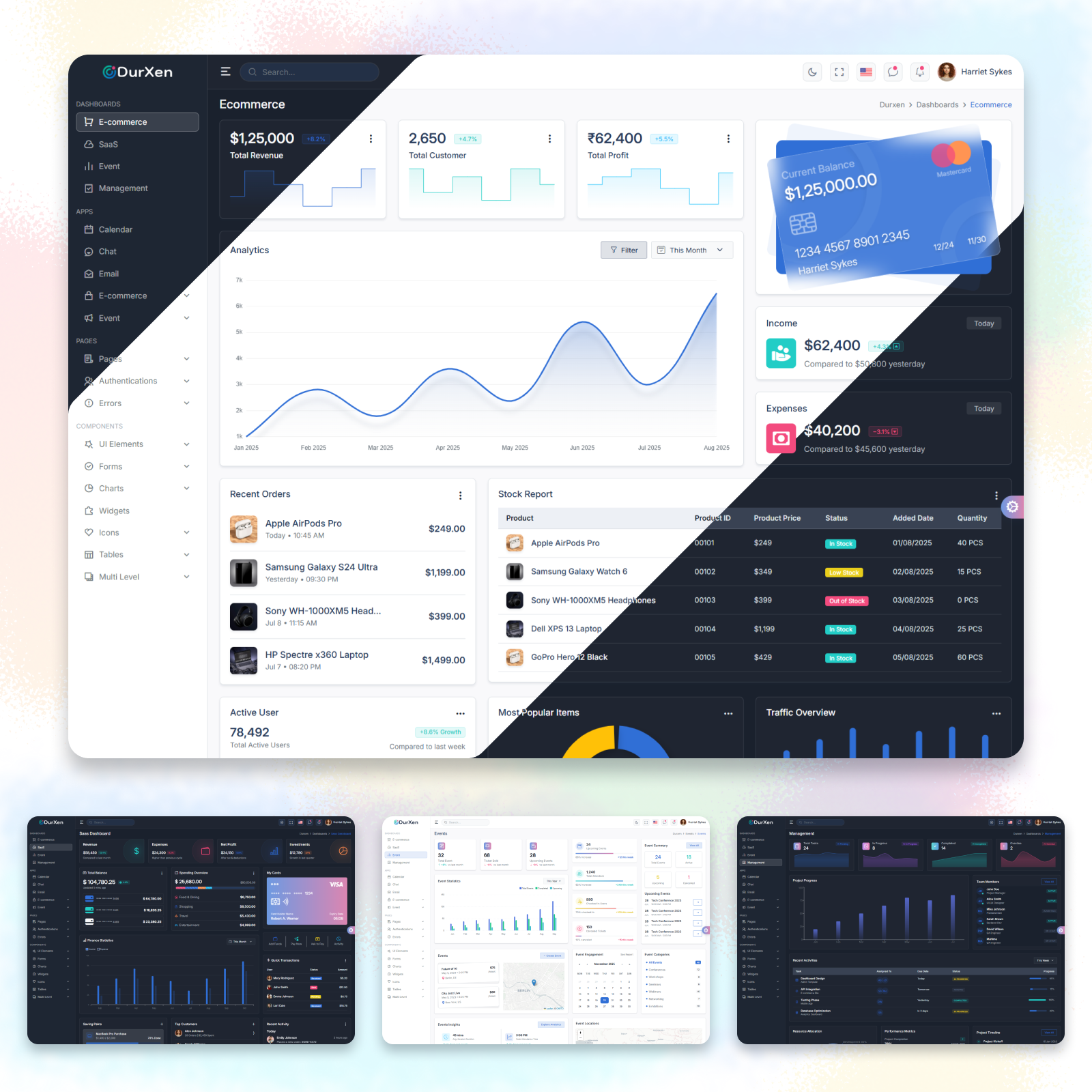 Durxen is a powerful, modern and production-ready Admin Dashboard Template available in HTML + Bootstrap, React, and Next.js versions.Designed with clean UX, smooth interactions, and developer-friendly architecture — Durxen helps you build dashboards, SaaS platforms, CRM systems, and internal tools effortlessly. ✨ What’s Inside :- ✔ 3 Full Versions Included: - HTML + Bootstrap 5 + SCSS + Gulp - React 18 + Bootstrap 5 - Next.js + React + Bootstrap 5 + SCSS ✔ Multiple Dashboards: SaaS, CRM, Ecommerce & more ✔ Dark Mode Ready (One-Click Toggle) ✔ Sidebar Multi-Color Options ✔ Clean Code & Modular Components ✔ Beautiful UI + Modern Layouts ✔ Charts, DataTables, Forms, Widgets, Calendar, Auth Pages, etc. ✔ Fully responsive, developer-friendly, and easy to customize Live Link - https://wrapmarket.com/item/WB05K36XL/preview