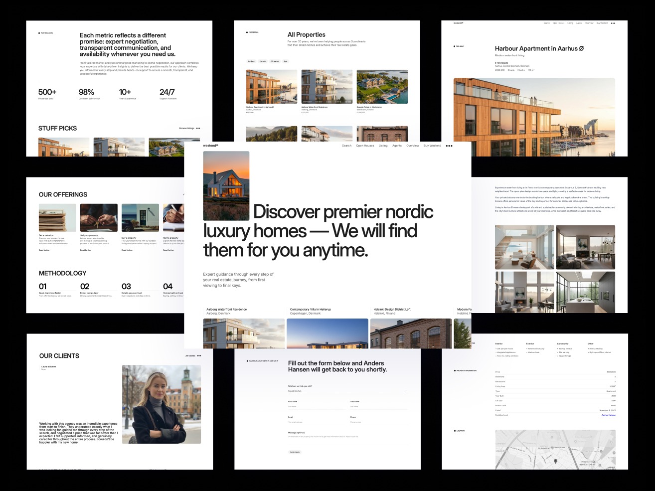 Westend gives real-estate teams a layout system that’s clear, trustworthy, and easy to scale. It includes everything: listings, agents, neighborhoods, valuations, real client stories and more — all structured and ready to ship.