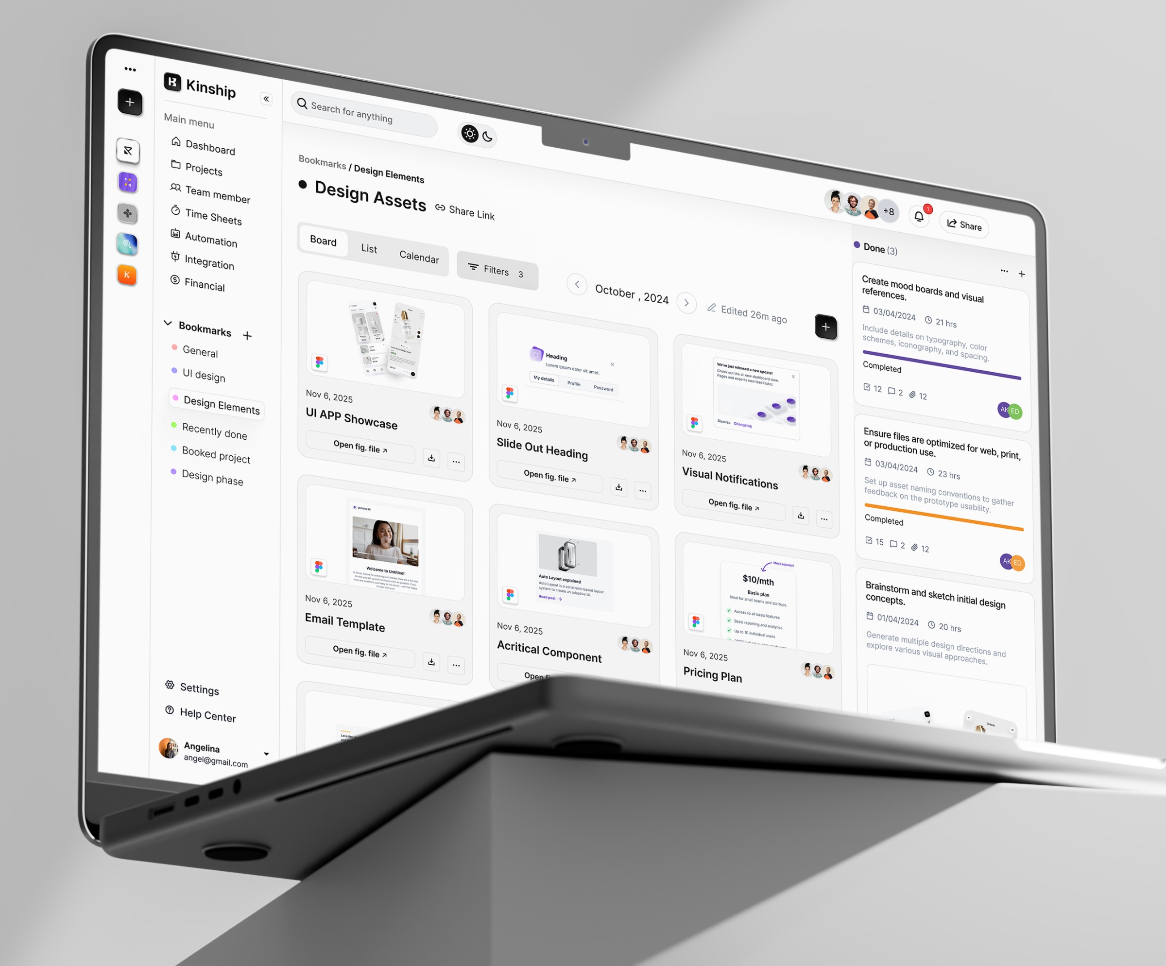 Kinship is a calm project management workspace for noisy product teams. It brings projects, tasks, timelines and design assets into one minimal dashboard, so teams stop jumping between tools and see what matters in a single view.