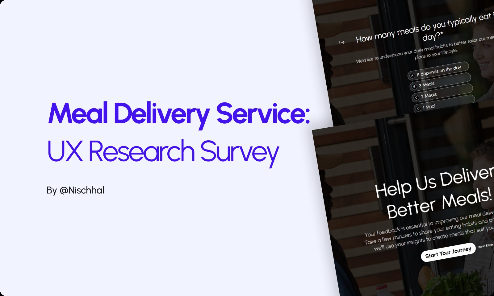 This project focuses on designing a UX research survey for a meal delivery service. The goal was to understand user preferences, behaviours, and pain points around ordering meals online. The survey explores factors such as delivery speed, food quality, pricing, and app usability. Each question was crafted to be clear, unbiased, and directly tied to research objectives. The insights gathered aim to guide product decisions, improve customer experience, and shape a service that better meets user needs.