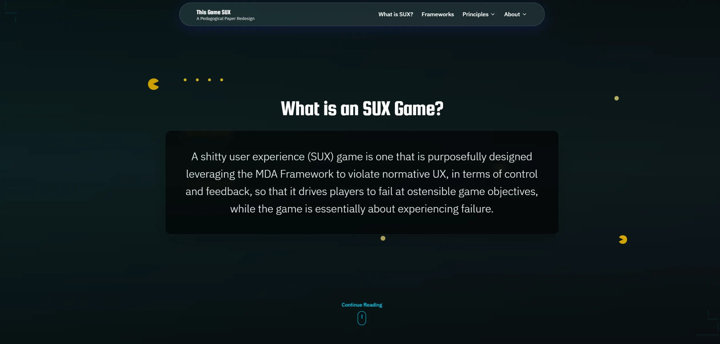 This article talks about a CHI Paper redesigned as an interactive website which can be accessed at https://thisgamesux.figma.site/