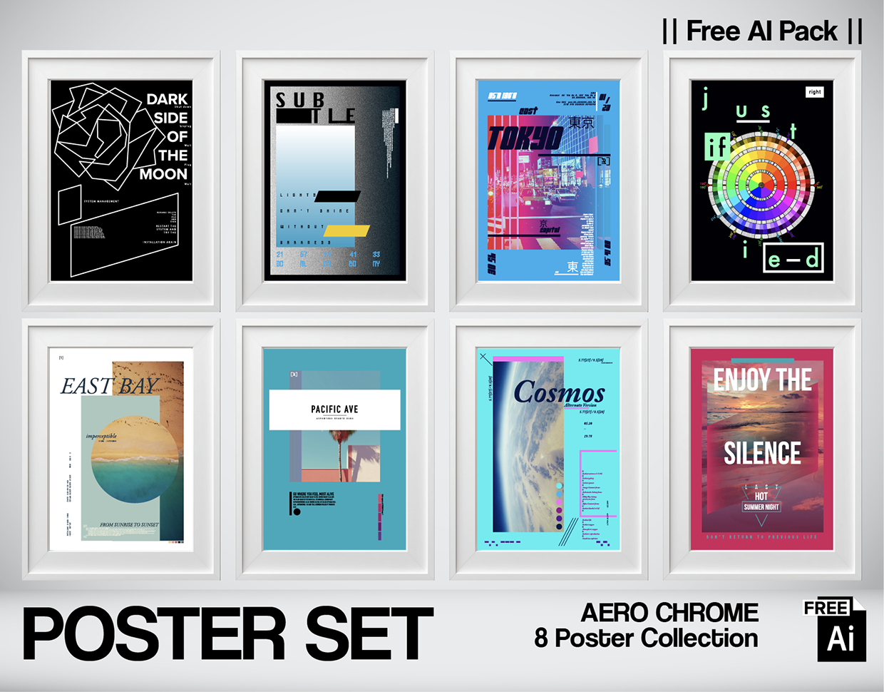 After exploring the void in our previous "Obscura" collection, we now turn to the light. "AERO CHROME" is a visual study on Color Theory, Iridescence, and Digital Gradients. This collection pulls 8 distinct vibrant pieces from the Nospoon Visual Lab Archive, treating color not just as decoration, but as a frequency. We moved away from solid brutalism to embrace soft transitions, holographic textures, and retro-futurist vibes. The Collection Explores: Cosmos & Pacific Ave: Vertical gradients mimicking atmospheric light. Just If: Radical color wheels and data visualization. Tokyo & East Bay: Neon aesthetics blending with Swiss Typography. 100% Human-Crafted Vector Archive: This project is part of a massive archive of 2,000+ vector posters. Every single gradient mesh and vector shape was crafted digitally by human hand. No generative AI was used. We believe in the intentionality of manual color grading. Designed by Serkan Kosemek / Nospoon Visual Lab.