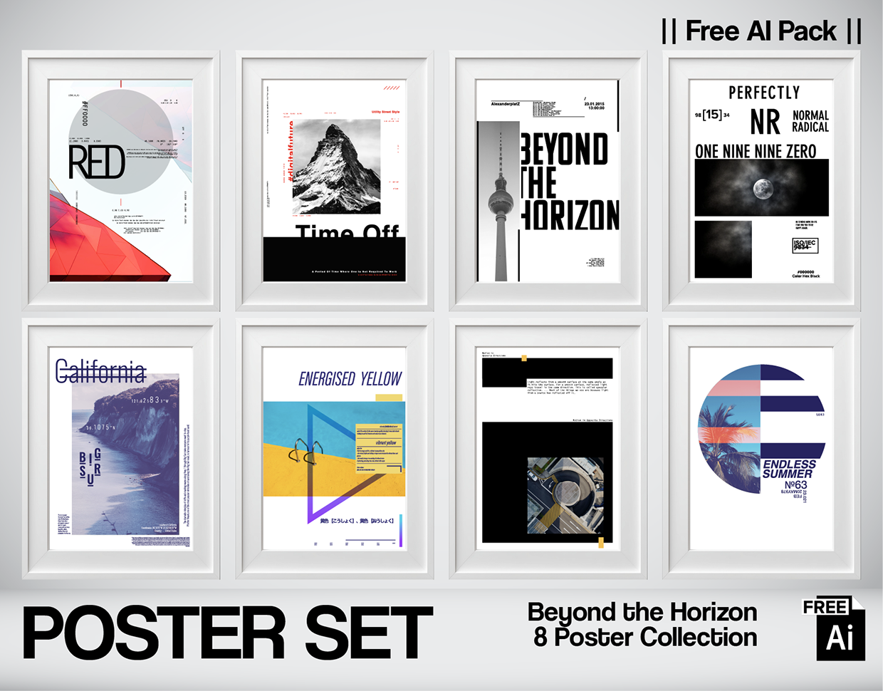 Beyond the Horizon is a free AI-generated poster collection exploring calm tension between color, space, typography, and photographic fragments. This 8-poster set focuses on visual balance rather than noise — using open layouts, restrained color palettes, editorial typography, and quiet architectural or landscape imagery. Each poster is designed as a self-contained visual study, suitable for examining hierarchy, spacing, rhythm, and contrast in contemporary graphic design. All files are shared freely for learning, remixing, and visual exploration.