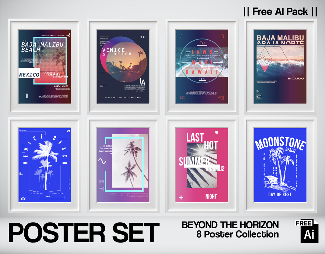 As the founder of Nospoon Visual Lab, I present my latest 8-piece poster collection: "Beyond the Horizon." This series is a typographic journey from the neon-lit romanticism of Baja Malibu to the sun-drenched sands of Hawaii and the bohemian soul of Venice Beach. My 20-year background in textile design continues to influence my digital work; you can see it in the layered textures, the rhythm of the repeated elements, and the bold, high-contrast color palettes. These aren't just posters; they are memories of "The Last Hot Summer" captured through brutalist typography and vintage photography.