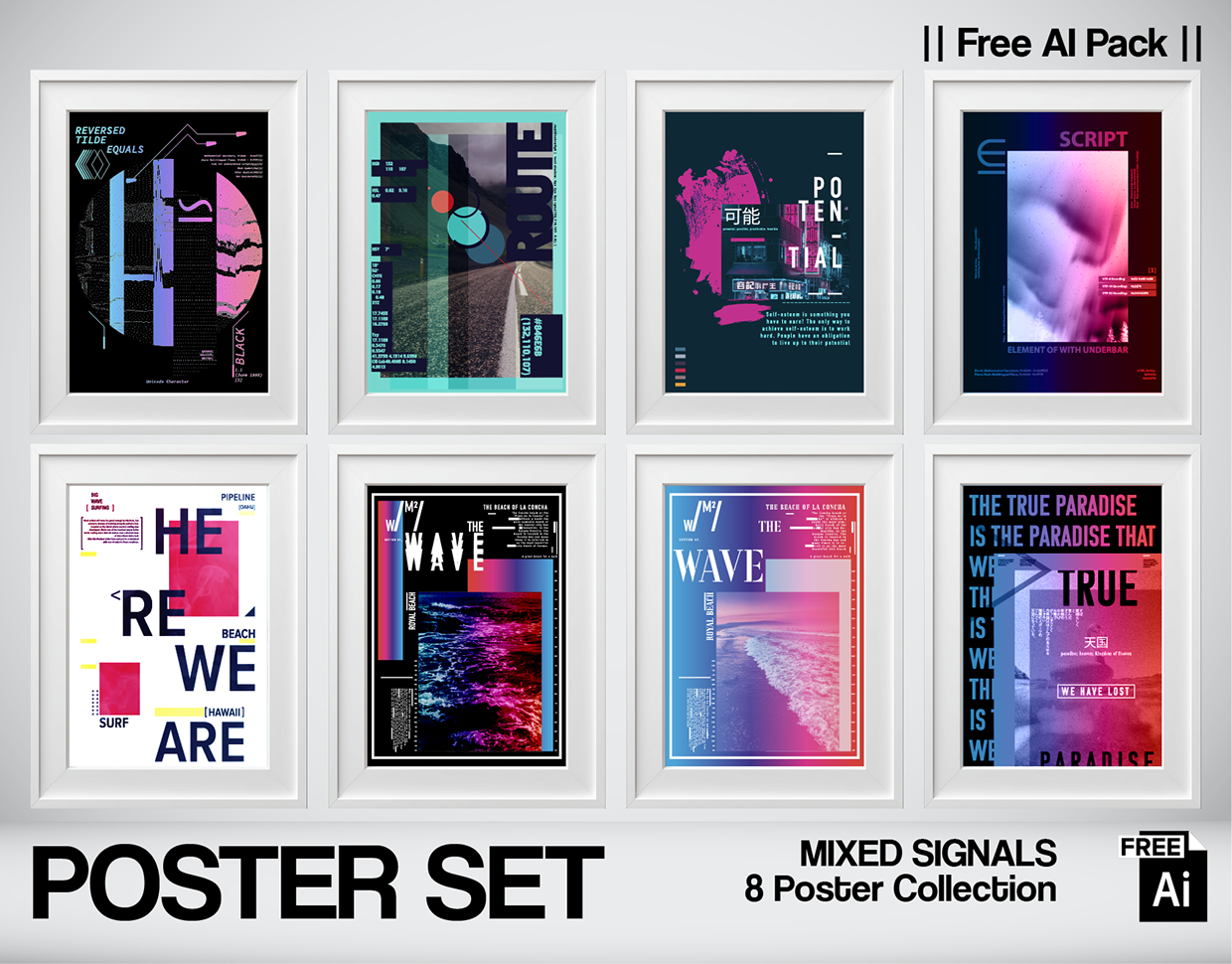 Navigating the spectrum between Swiss order and digital chaos. The Story (Manifesto): Design does not exist in a vacuum; it exists on a spectrum. CHROMATIC / ECLECTIC is a study of contrasts. In this series, I explored the tension between the strict, grid-based discipline of Swiss International Style and the fluid, unpredictable nature of Glitch Art and Retrowave aesthetics. From the clean, typographic minimalism of the "Surf/Hawaii" concepts to the neon-soaked, distorted layers of the "Glitch" pieces, this collection represents a search for visual harmony in diverse styles. It is a dialogue between the analog past and the digital future. Key Visual Pillars: Swiss Style: Clean grids, bold sans-serif typography, and negative space. Retrowave & Vaporwave: Nostalgic gradients, ocean motifs, and neon hues. Digital Glitch: Distorted textures, noise, and abstract overlays. Cross-Cultural Type: Merging Latin letterforms with Japanese Kanji. Design & Art Direction Serkan KÖSEMEK