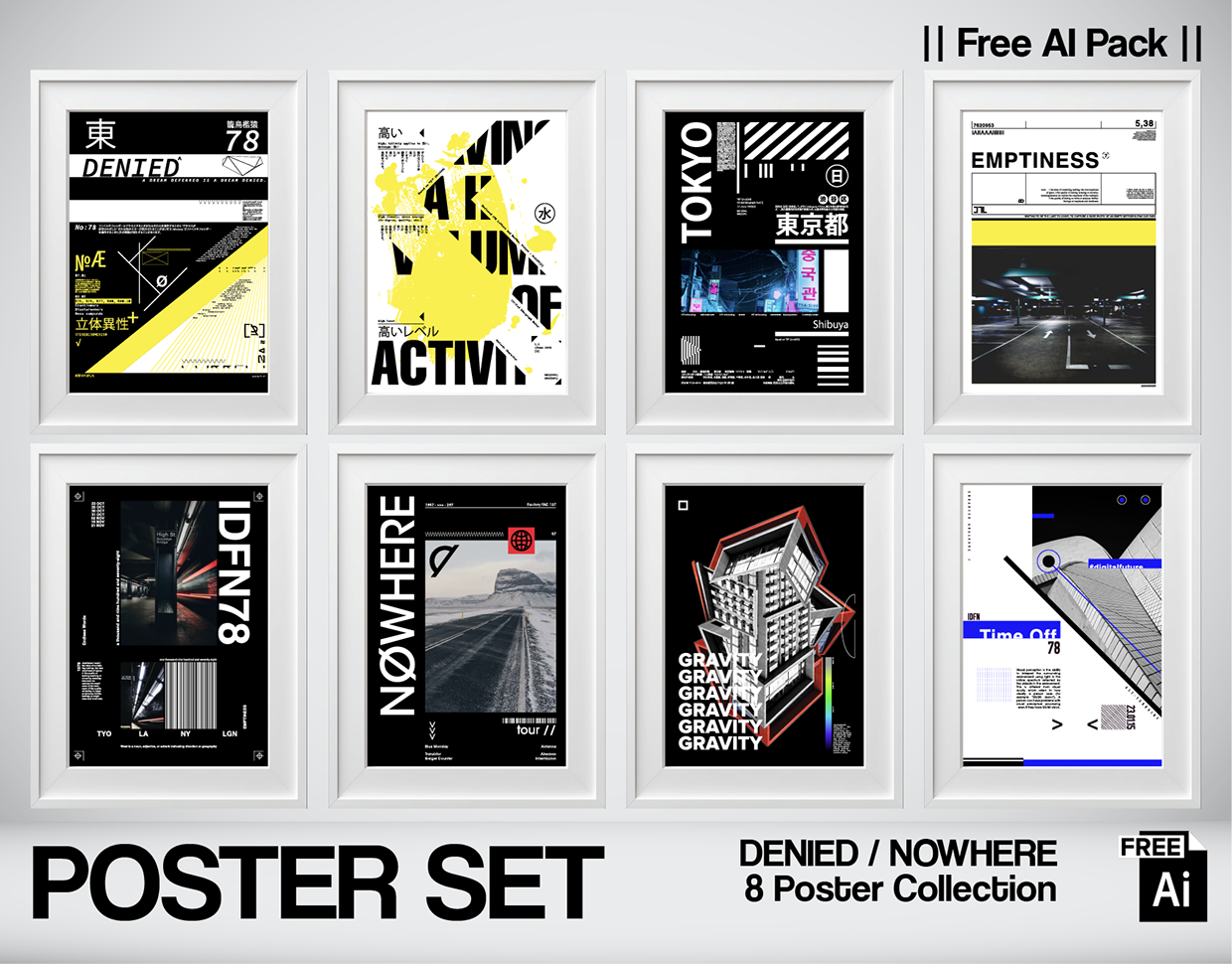 ENIED / NOWHERE is a free experimental poster series exploring absence, restriction, and controlled space within contemporary urban systems. This collection focuses on visual tension between permission and denial, movement and stillness, presence and emptiness — using fragmented typography, warning graphics, architectural imagery, and interface-like layouts. Each poster functions as a visual document rather than a narrative, capturing moments where the city becomes silent, inaccessible, or intentionally undefined. All files are shared freely for study, remixing, and visual experimentation.