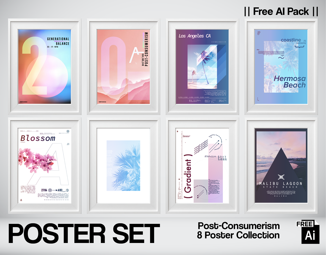 Finding serenity in the digital flow. As the founder of Nospoon Visual Lab, I explore the intersection of human emotion and digital aesthetics in this latest 8-piece collection: "Generational Balance." This series is a visual meditation on "Post-Consumerism," where harsh urban structures give way to soft gradients, blooming cherry blossoms, and the eternal light of the Malibu coast. Using my 20-year background in textile design, I’ve layered these compositions to feel like digital silk—fluid, translucent, and interconnected. From the technical "Strength Gradient" to the delicate "Blossom" study, each poster is a search for harmony in a high-speed world.