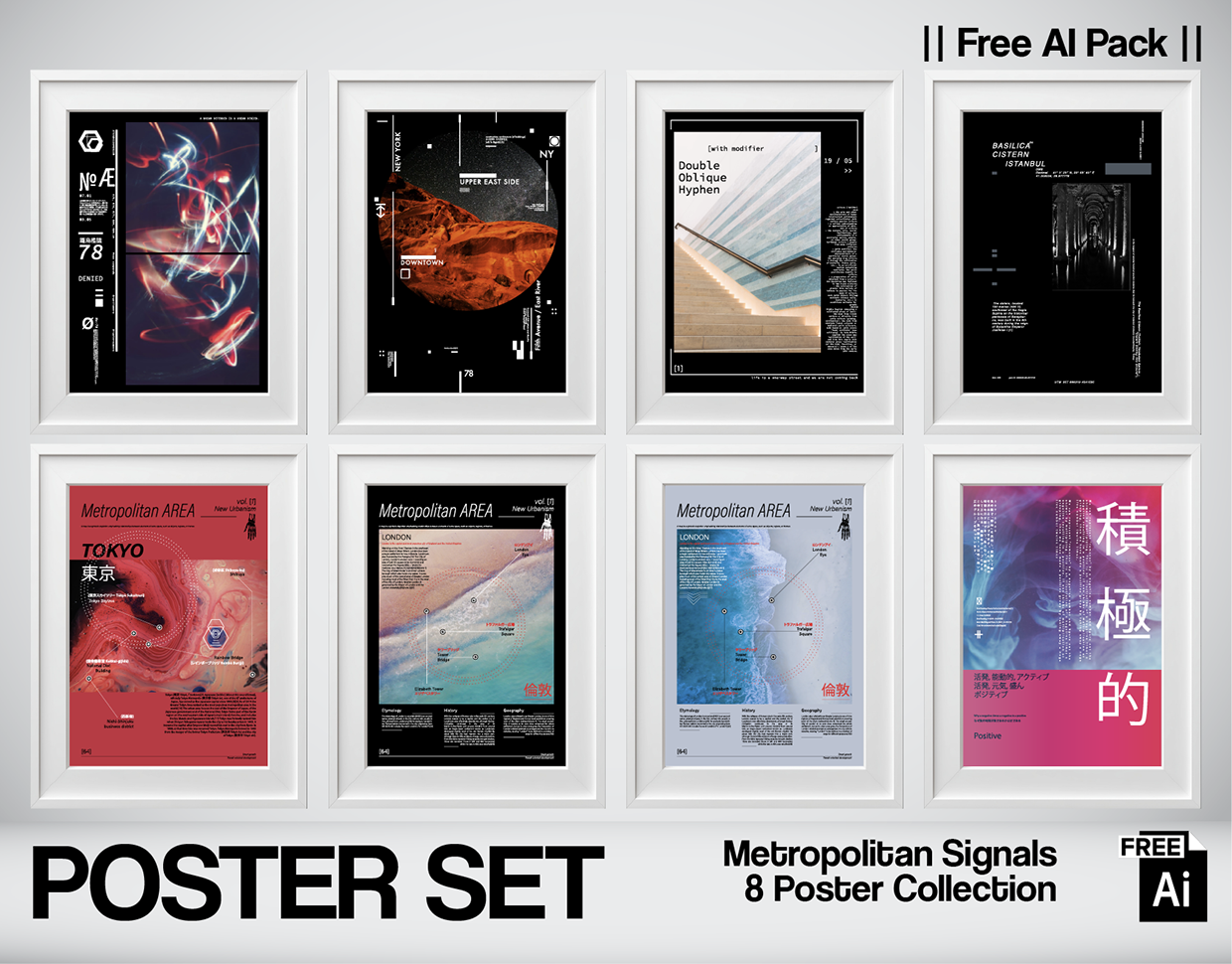 Metropolitan Signals — Free AI Poster Pack (8 Files)