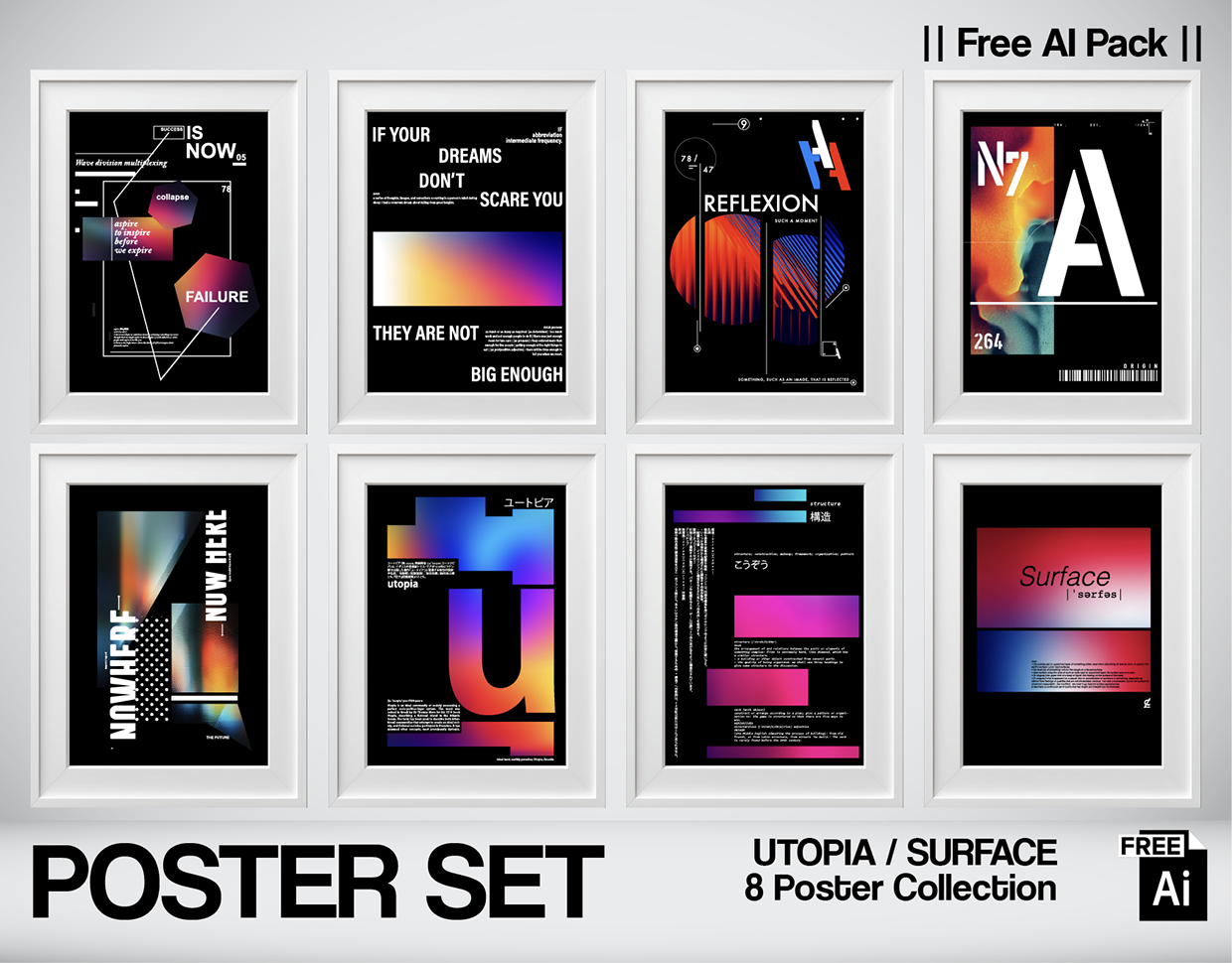 This project is an exploration of experimental typography, abstract systems, and visual tension. Each poster is designed as an independent visual statement, yet together they form a cohesive system built on contrast, structure, and controlled chaos. Sharp typographic hierarchies collide with soft gradients, digital textures, and modular compositions—creating a balance between precision and emotion. The series focuses on: Bold typographic forms Data-inspired layouts Gradient-driven depth Minimal yet expressive compositions Rather than delivering a single narrative, the posters function as visual fragments—open to interpretation, reflection, and personal meaning. Designed for digital display, print, and conceptual branding environments.