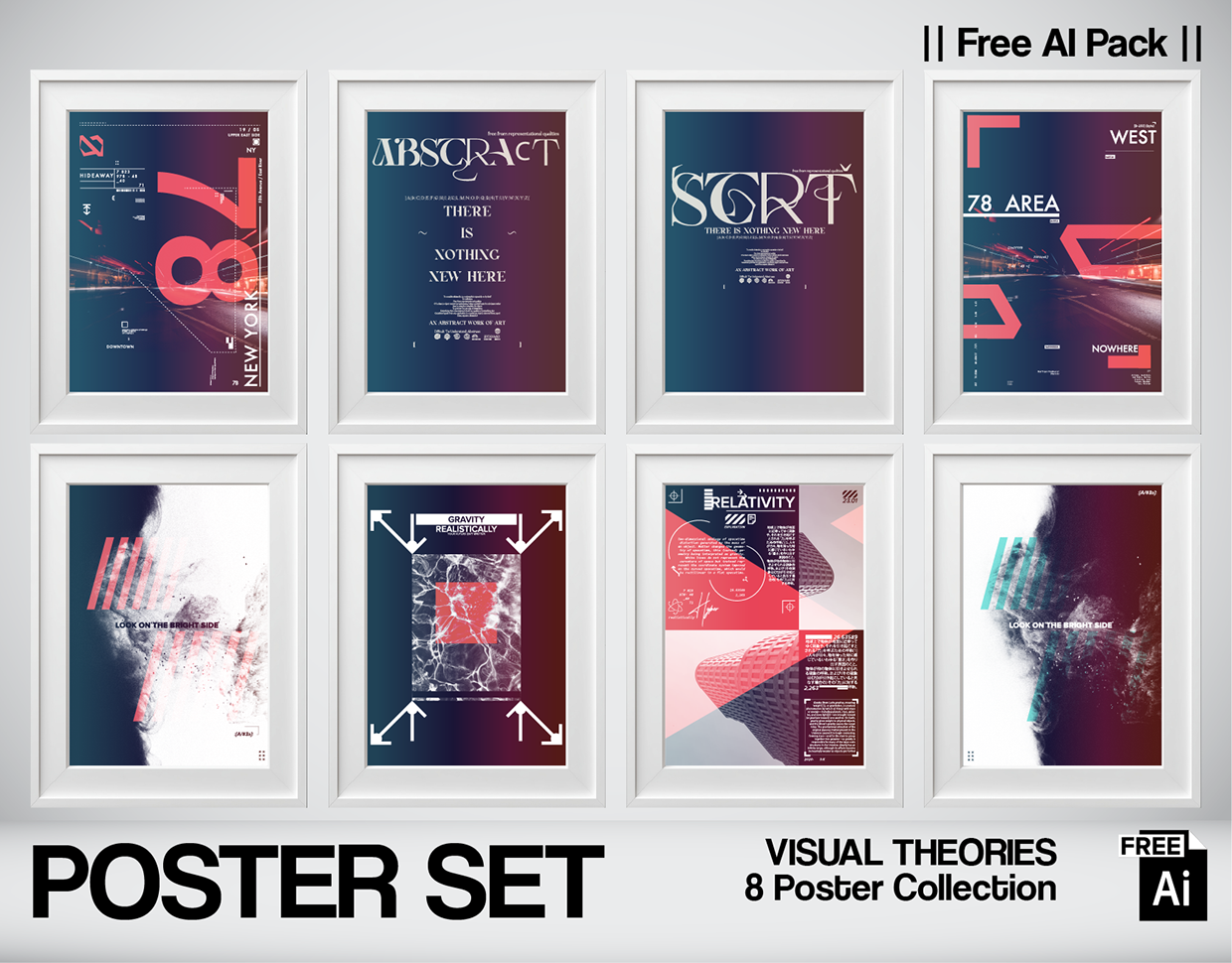 Visual Theories is a structured poster series exploring the relationship between scientific concepts, urban environments, and typographic systems. Each composition is built on a consistent chromatic gradient structure — transitioning between deep cyan, indigo, and burgundy — creating a unified visual language across diverse themes such as gravity, relativity, abstraction, and metropolitan energy. Rather than isolated posters, this project functions as a modular visual system. Key explorations include: • Concept-driven typography • Scientific language as aesthetic structure • Data-inspired layouts • Urban photography integrated with grid logic • Controlled color gradient systems • Repetition and variation within a visual framework The goal is not to illustrate science, but to visualize structured thinking. A balance between logic and atmosphere. Between information and emotion.