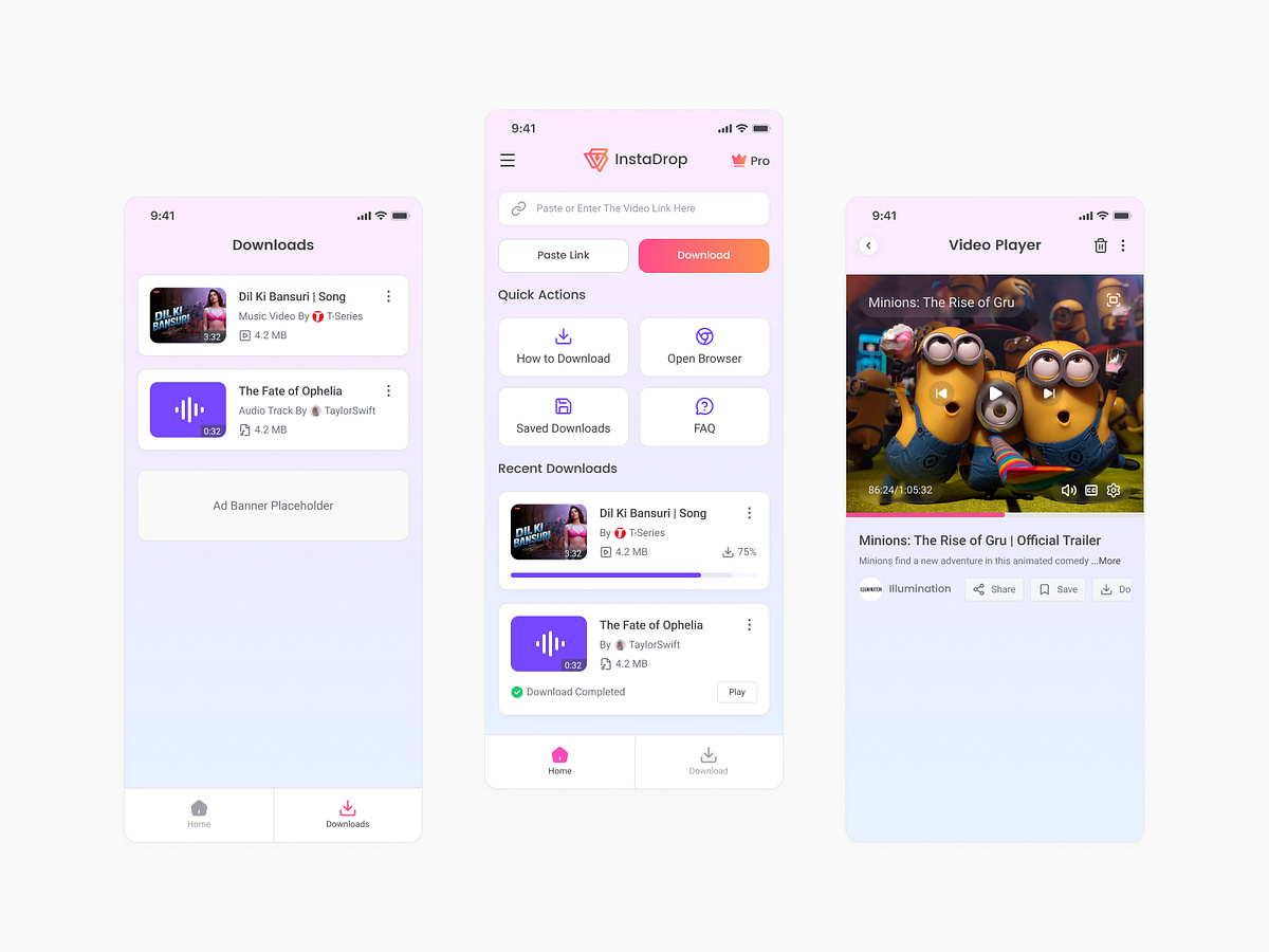 InstaDrop – Instagram Video Downloader Mobile App UI/UX Design