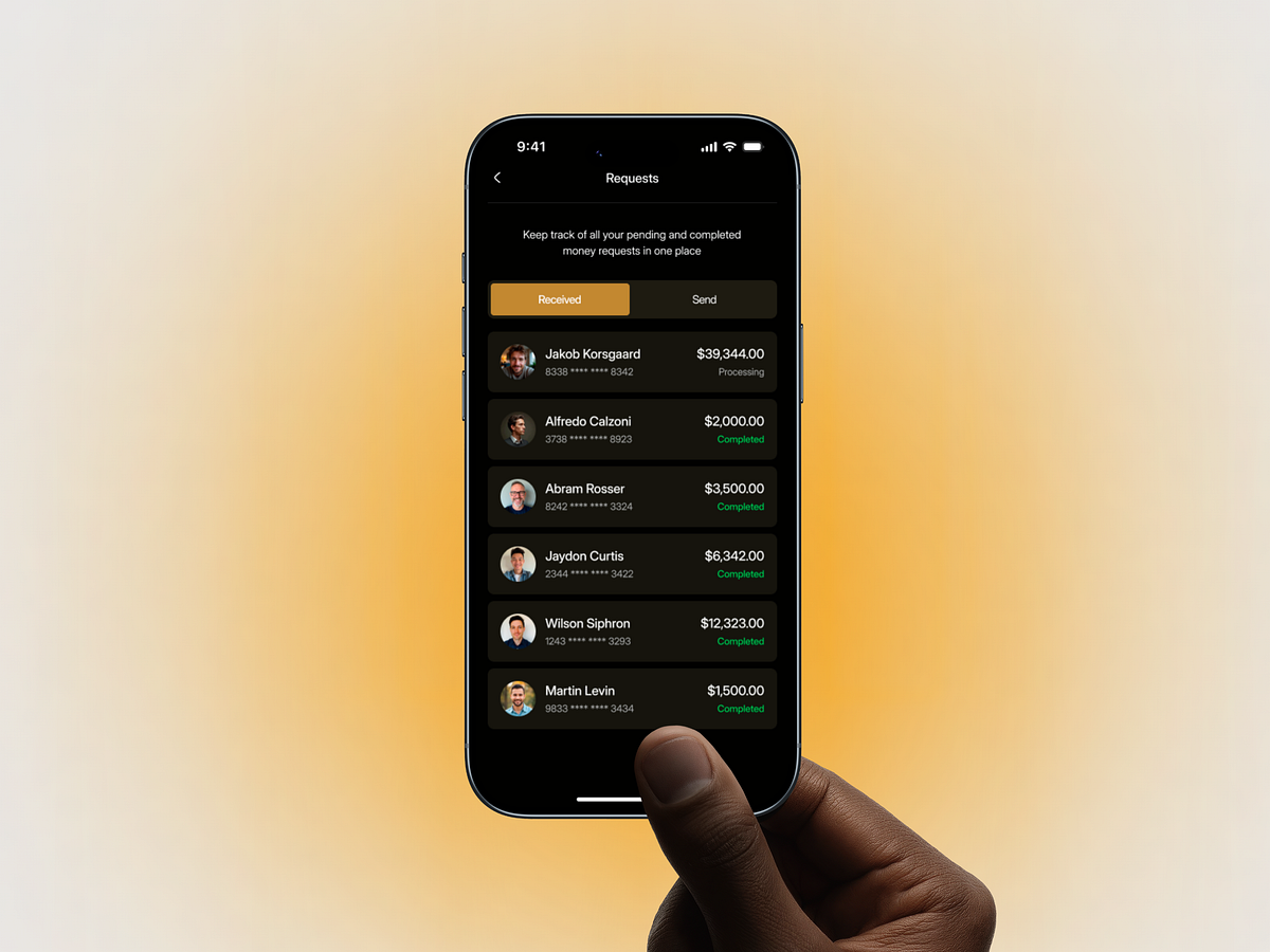 Managing money should feel secure, effortless, and transparent. This mobile app UI design focuses on simplifying peer-to-peer payments, money requests, and transaction tracking through a clean, premium fintech experience. Many finance apps overwhelm users with cluttered screens, unclear transaction states, and complex money-sending flows that reduce trust and usability. This concept introduces a streamlined money transfer experience with clear request statuses, intuitive send flows, and instant transaction feedback—helping users stay in control of their finances at every step.