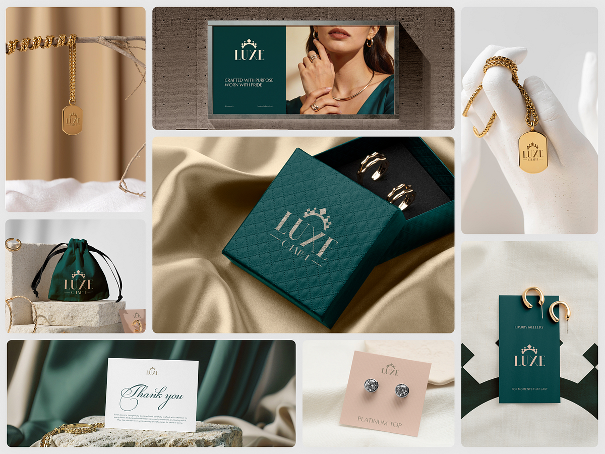Luxury jewelry brands rely on restraint, consistency, and detail. LUXE is a branding concept designed to communicate craftsmanship, elegance, and lasting value through a refined visual system. Many jewelry brands rely on decoration rather than structure, resulting in identities that feel inconsistent across packaging and retail touchpoints. This branding system uses a disciplined logo mark, muted color palette, and material-led packaging to create a cohesive and premium brand presence.Design A balance of minimal typography, deep green tones, and gold accents establishes clarity while reinforcing luxury and trust.