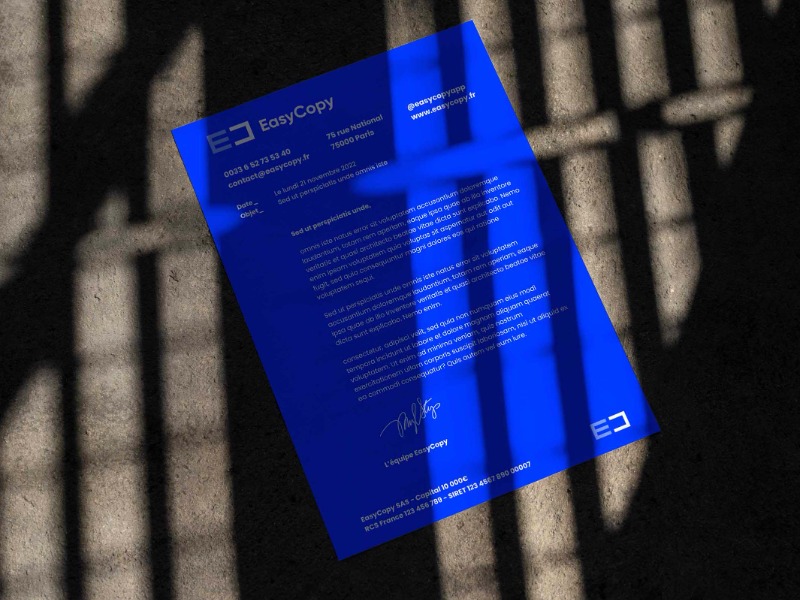 Easy Copy was conceived by Stéphane Le Sech, creator of the physical PC Duo outlets, dedicated to the repair and sale of computer equipment. The idea behind Easy Copy? To create a network of partner printers around a digital online printing solution. Through a dedicated website, a user can upload documents, print them in the nearest print shop, and pick them up once the printing is finished. Palantis was mandated by Stéphane to think about the complete visual identity of the solution, as well as all the supports that would make the brand live through its graphic territory. We opted for a simple, geometric graphic signature, with a strong and sharp visual impact. The shape of the logo on the one hand, but also the choice of a bright color spectrum. The Easy Copy logo is therefore a stylized "E" and "C". The "C" is deliberately inverted to create a visual symmetry. This echoes the promise of the solution which is dedicated to copying and printing documents. The logo thus becomes the central pivot of the identity. The basic element used to decline all the elements and communication supports, creating compositions based on geometric patterns.