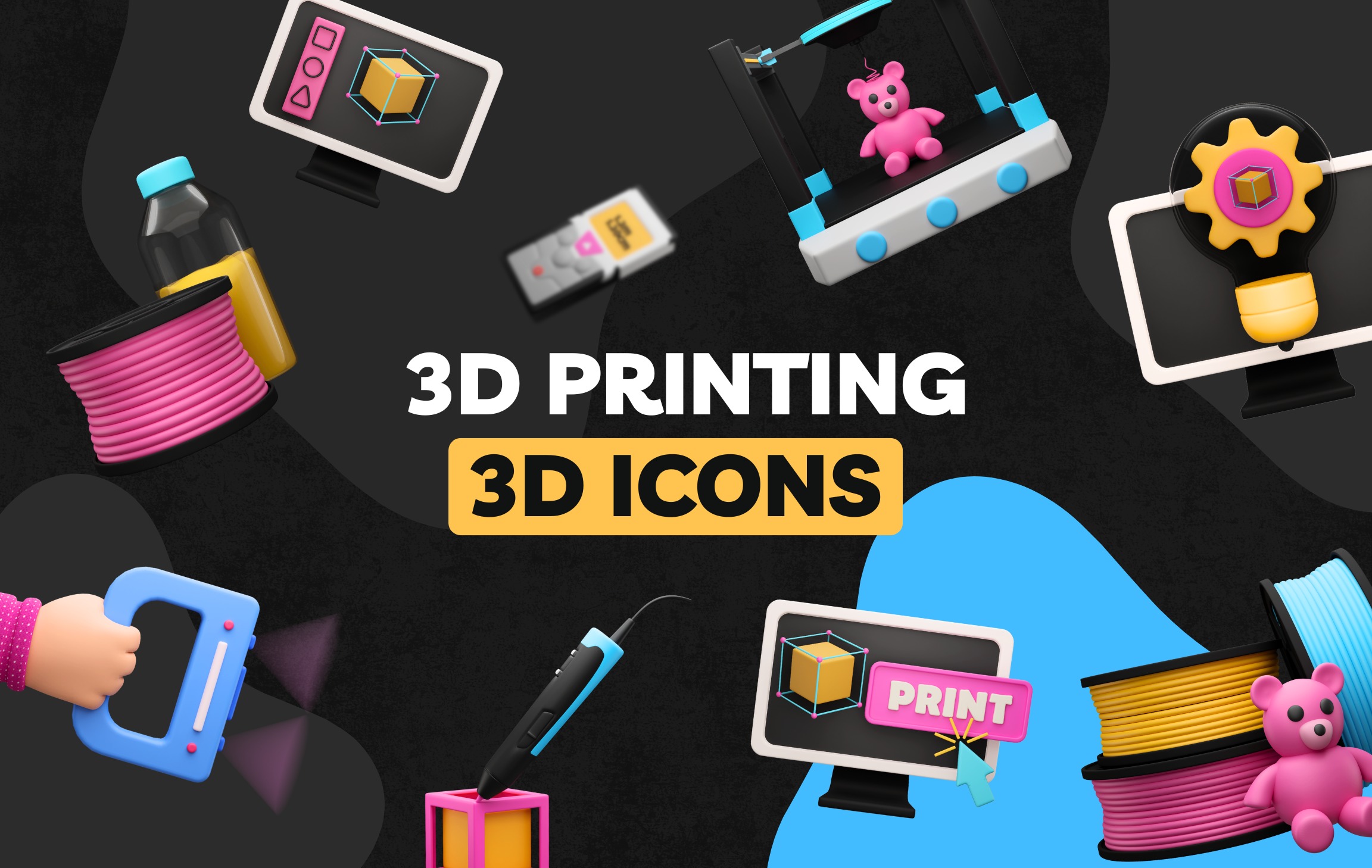 Today, we’re sharing the 3D Printing 3D Icon Pack — ideal for makers, product designers or educational projects. Perfect for illustrating anything from modern fabrication to creative DIY concepts. Free to download and use.