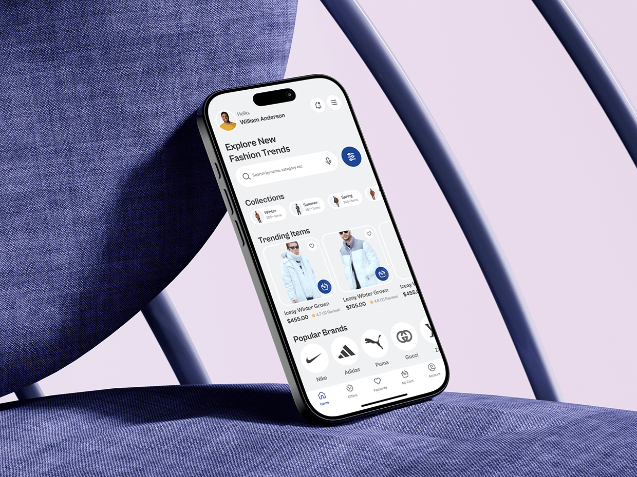 This eCommerce Fashion App home screen was designed by starting with user intent, not UI trends. From research, one insight stood out: most users don’t know exactly what they want—they want to discover. That insight shaped the entire structure of this screen. Instead of pushing filters upfront, the design leads with curated collections and trending items to reduce friction and decision paralysis. The hierarchy is intentional. Personal greeting builds trust, search remains accessible but secondary, and collections act as guided entry points. Each product card balances visual appeal with essential decision data—price, ratings, and quick actions—without overwhelming the user. Brand logos are placed lower in the flow to reinforce credibility after interest is established, not before. Spacing, contrast, and tap targets were optimized for mobile ergonomics to support one-handed use. This design focuses on clarity over complexity and momentum over noise, helping users move naturally from browsing to purchase. From your perspective, what’s the hardest UX challenge in fashion eCommerce—discovery, trust, or conversion?